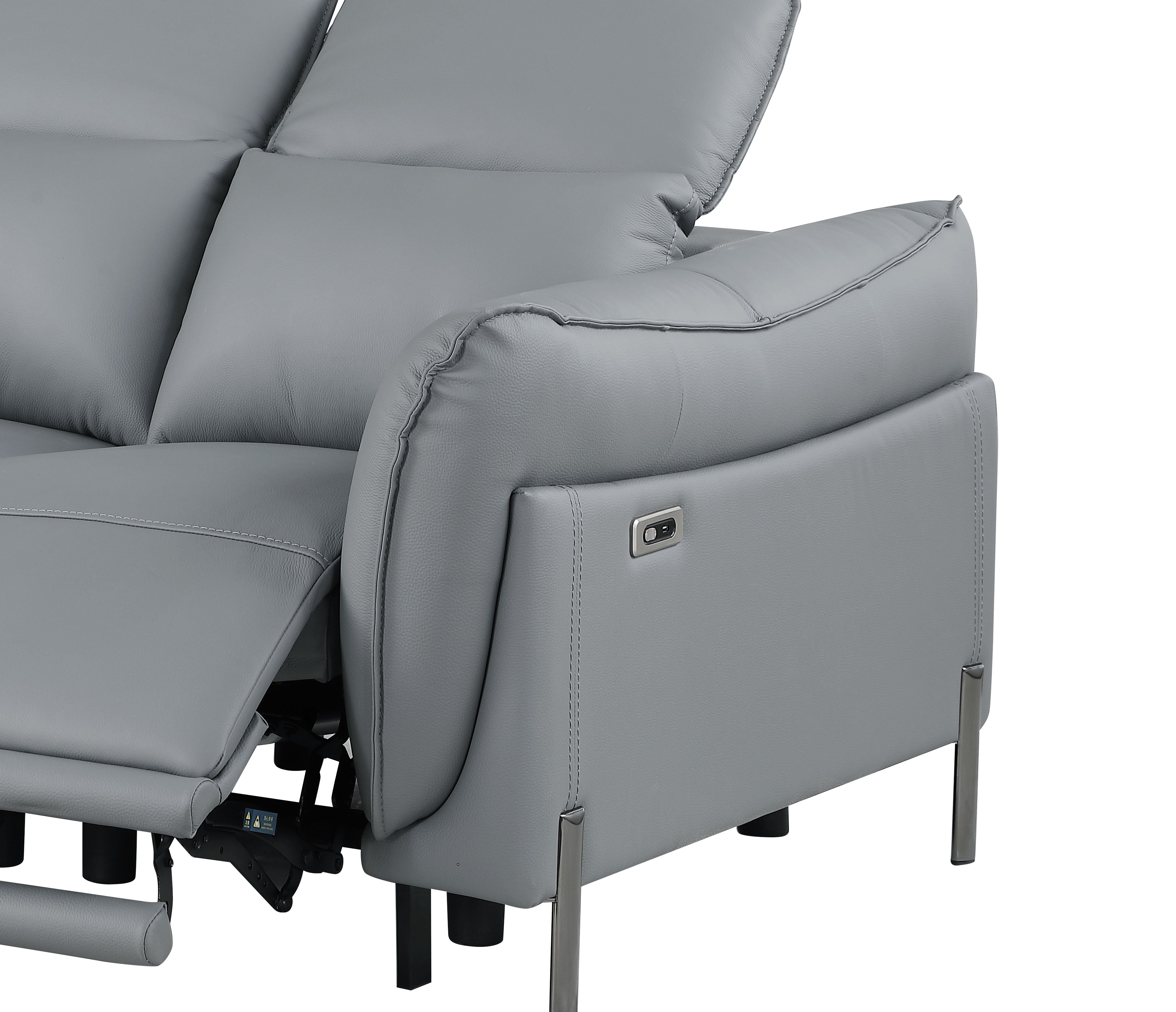 Consider this your next contemporary addition to any living area. This low-profile and power-enabled modular sofa combines form and function in one package. Adorned in a sleek gray faux leather upholstery, the unit features smooth one-touch motion capabilities. Growing with you and your needs, the couch comes in a variety of configurations and modular groupings.