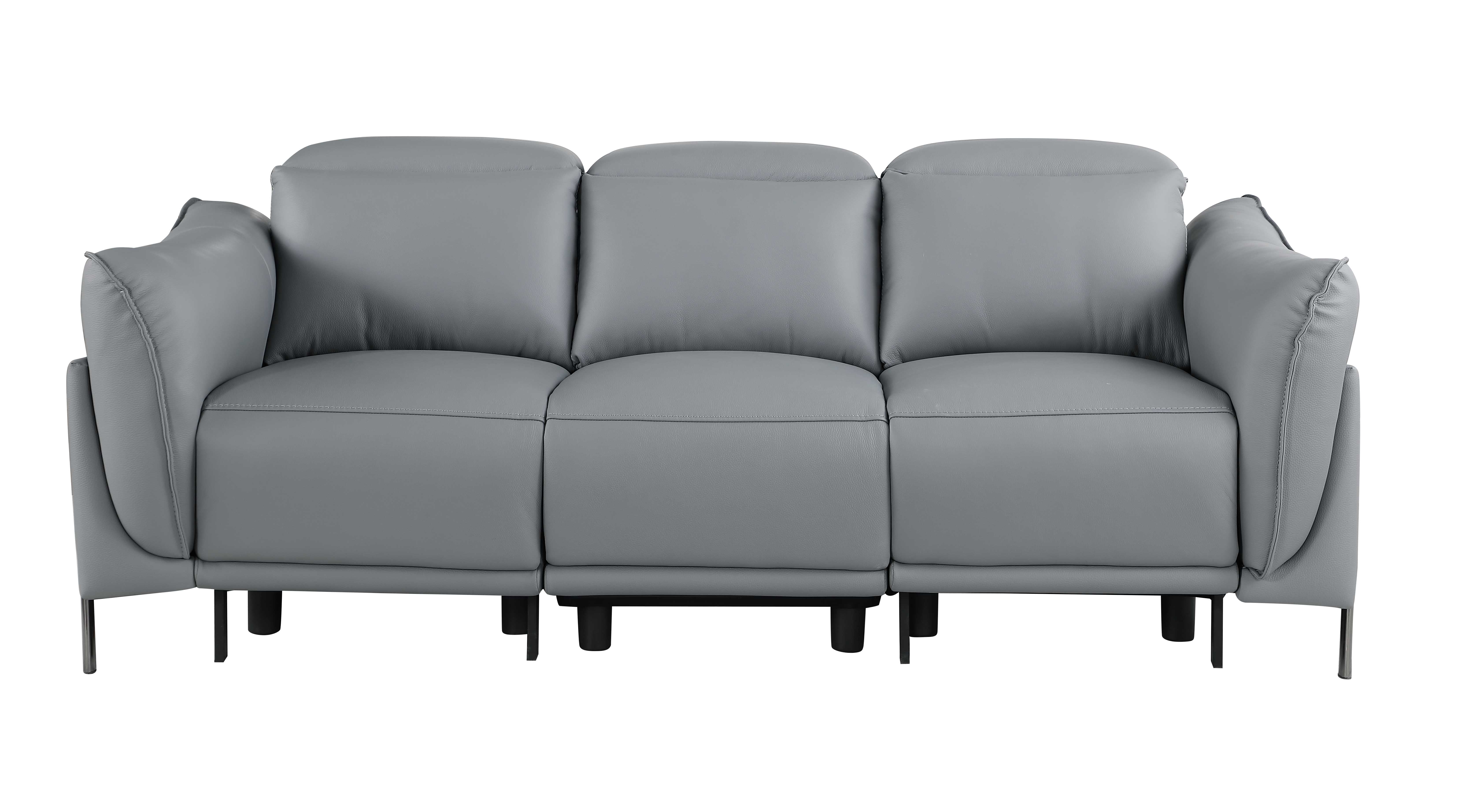 Consider this your next contemporary addition to any living area. This low-profile and power-enabled modular sofa combines form and function in one package. Adorned in a sleek gray faux leather upholstery, the unit features smooth one-touch motion capabilities. Growing with you and your needs, the couch comes in a variety of configurations and modular groupings.