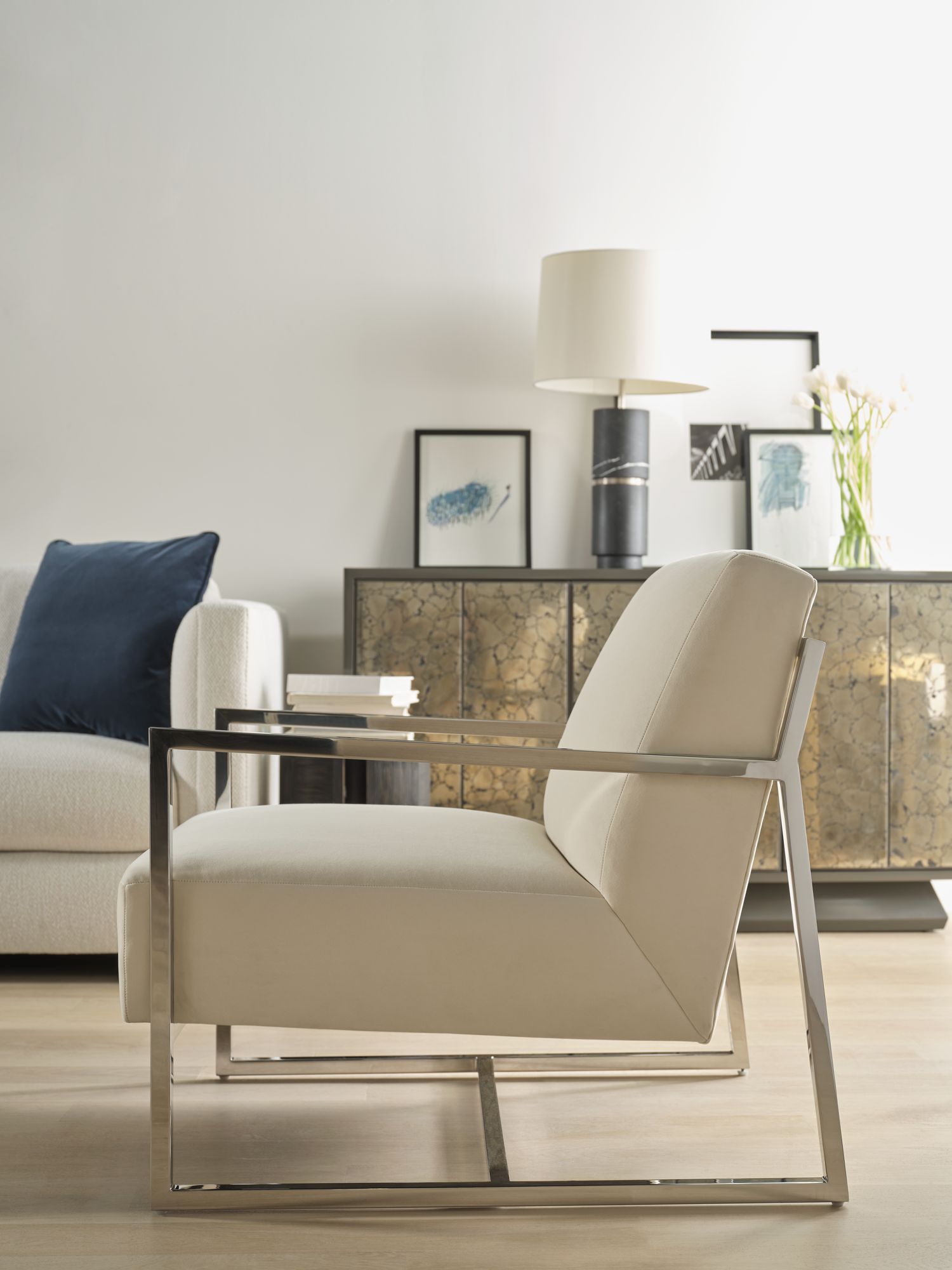 The Lennox Lounge Chair is an exploration in fine materials, pairing a polished stainless steel metal frame with a highly comfortable seat in your choice of fabrics.