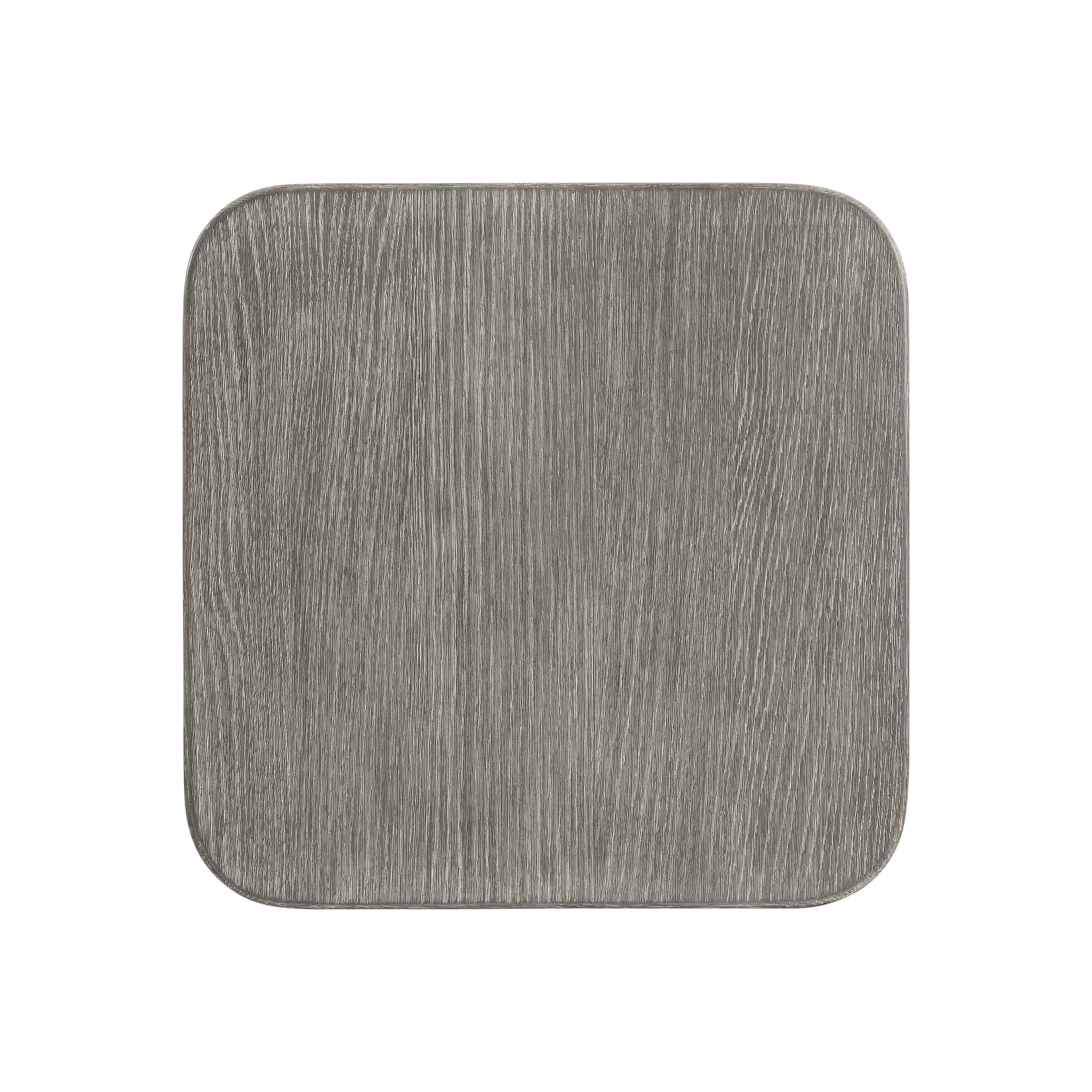 The Monolith side table perfectly balances curves and lines with a softly rounded square top and straight forms on the base. A unique panel extends from the base, offering a bold detail. Deep wirebrushing creates beautiful texture in Puma finish.