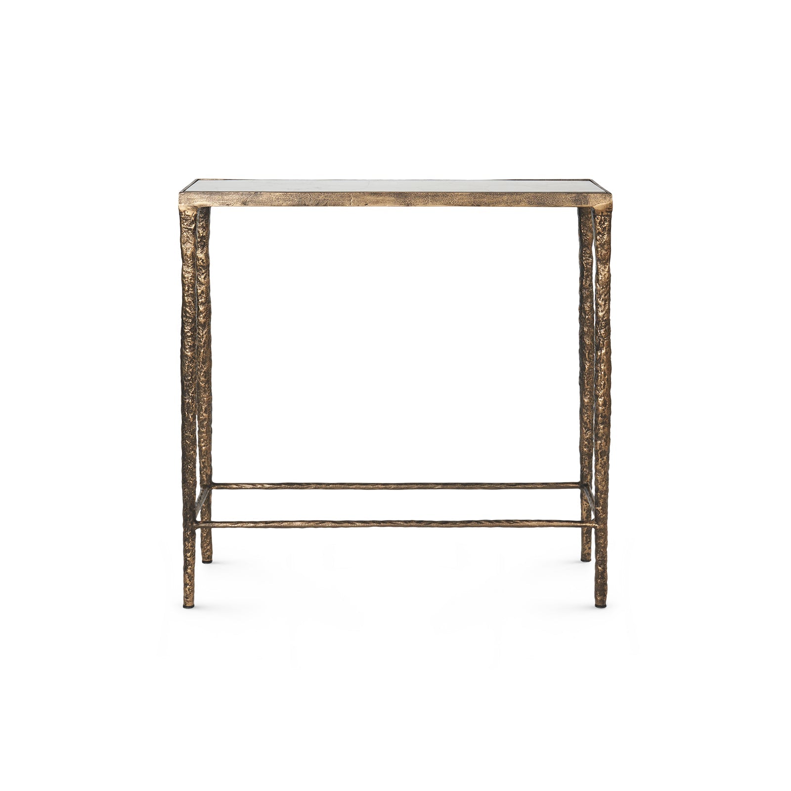 The beauty of rock crystal meets the fluid strength of iron in the Nora Console. Hand-joined pieces of crystalline quartzite form a glamorous tabletop, mounted on an antique-brass finished base cast to resemble molten metal. With its luminous surface and sculptural frame, this console blends quiet drama with refined craftsmanship. The Nora is perfectly proportioned for hallways, entryways, or other narrow spaces where style and presence are still essential. An artisanal standout with an elegant edge.