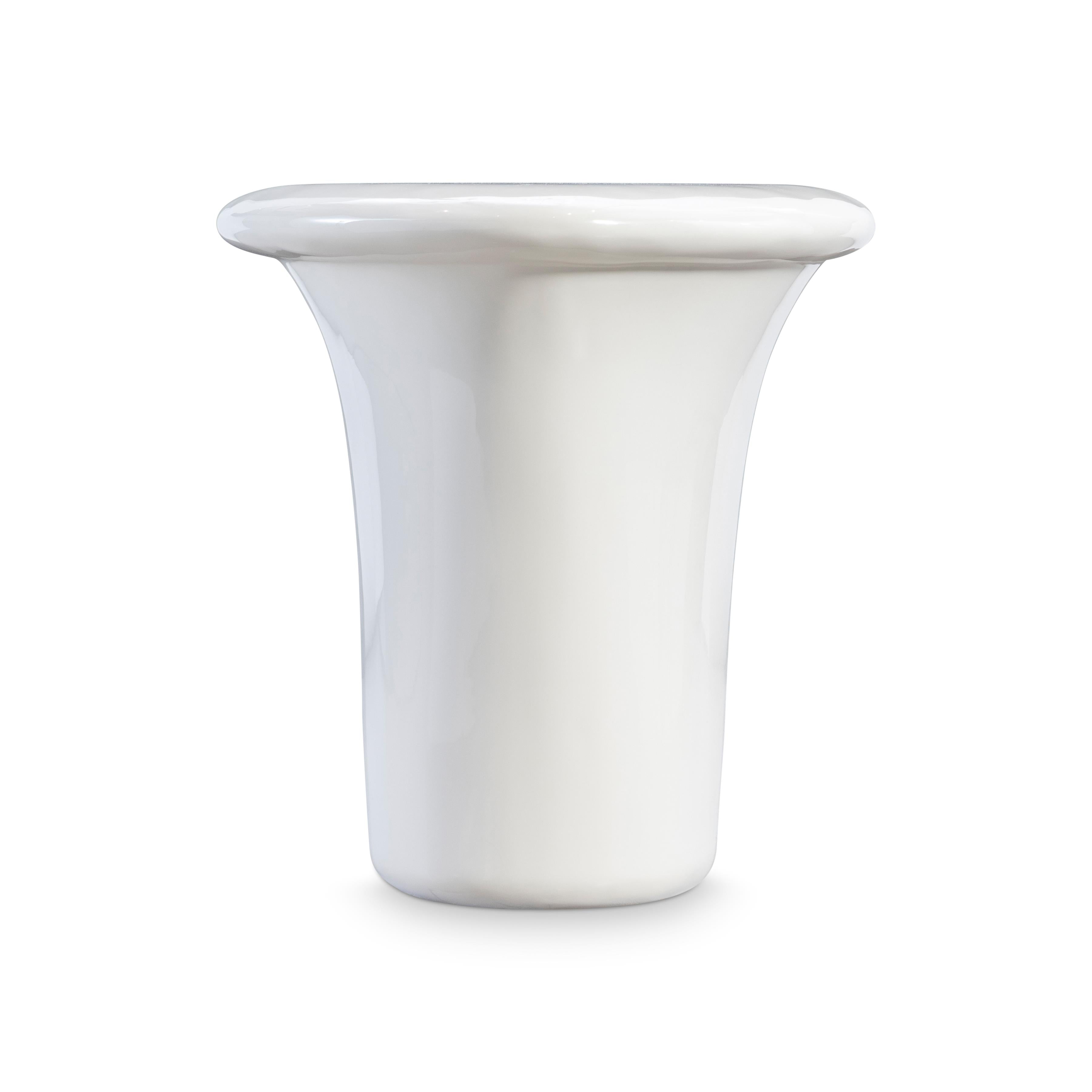 Like a wave just about to crest, the Poca side table offers a fluid shape that rises from the floor. The glass reinforced concrete table has a wavy textured top and a smooth base in Lumen finish.