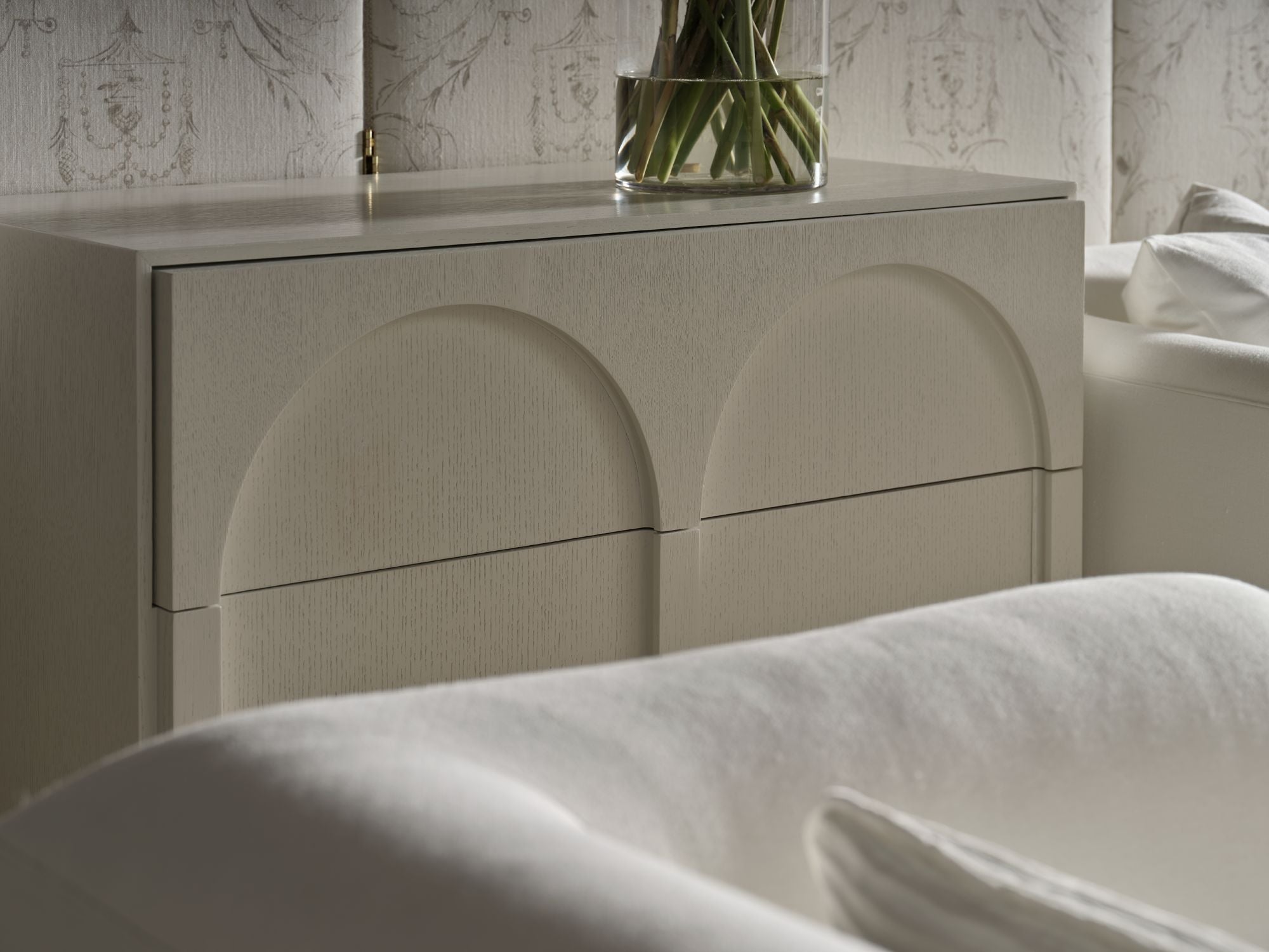 Cascading arches and three generous drawers form the Roman Chest, a utilitarian and classically informed piece that references ancient architecture.