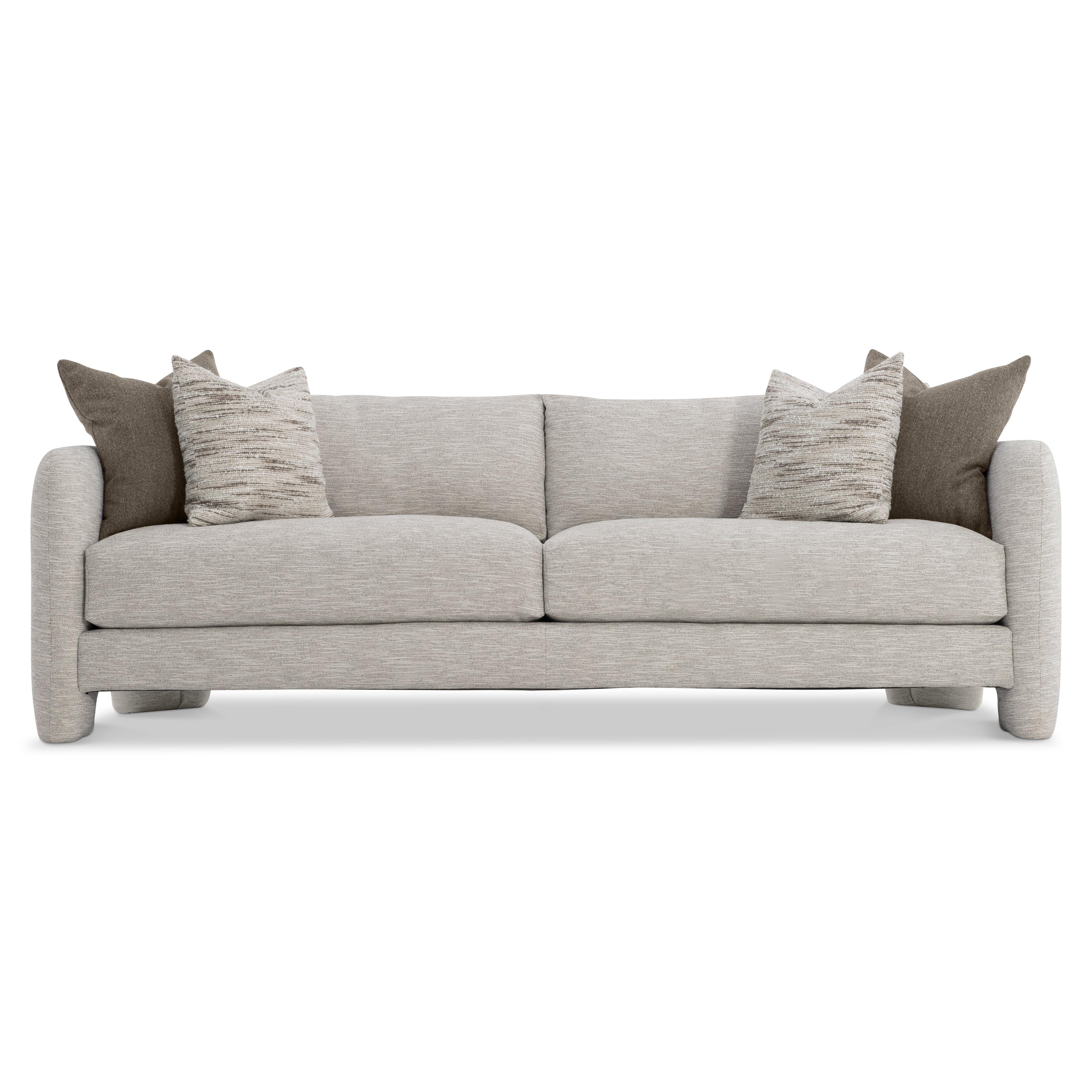 The Rowan sofa has a sculptural style with geometric details cut into the base to form upholstered feet. The padded sides and back add a softness to the form and a unique stitch detail makes a tailored statement. Deep seat cushions and loose back pillows complete the comfortable design.