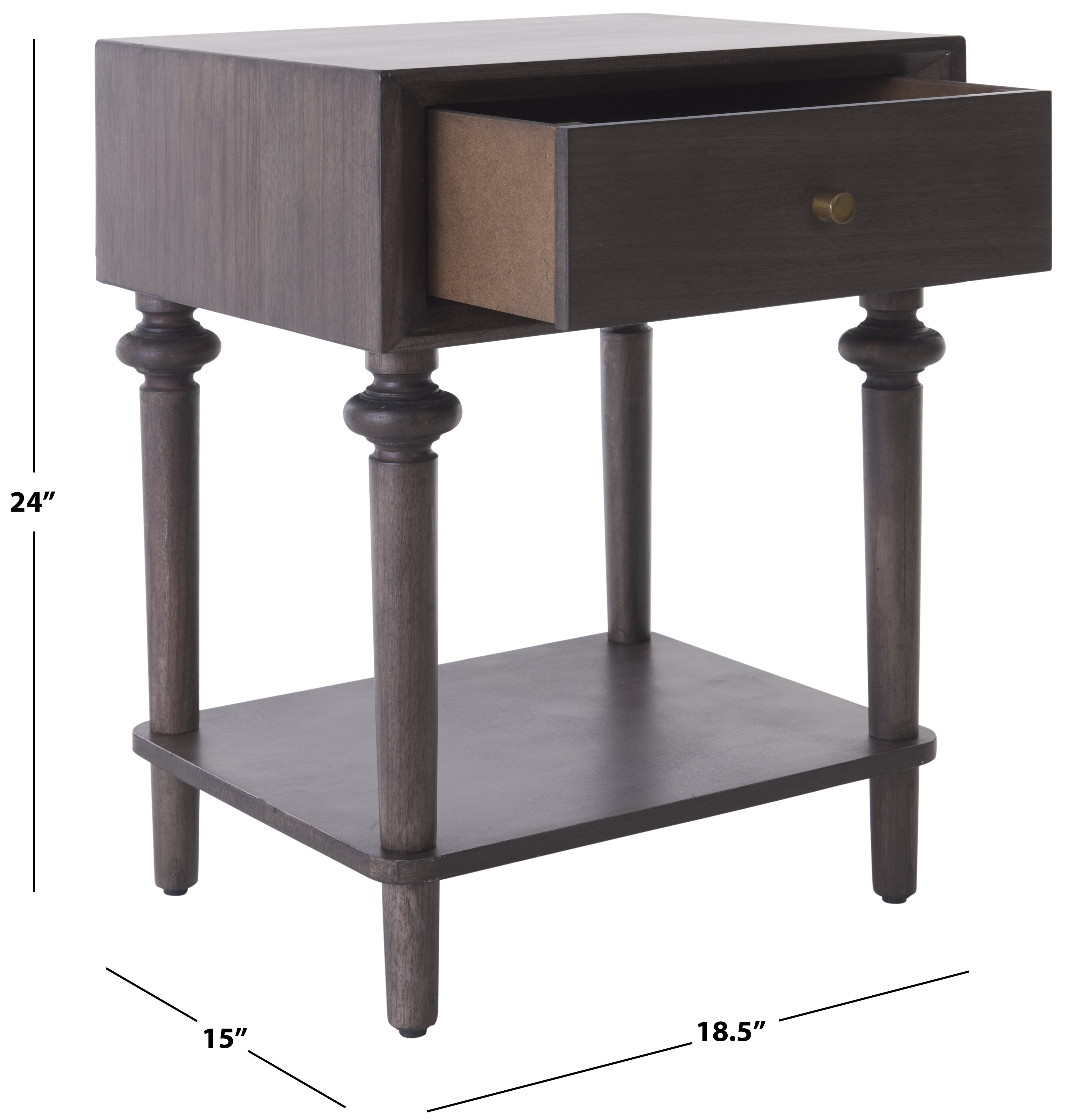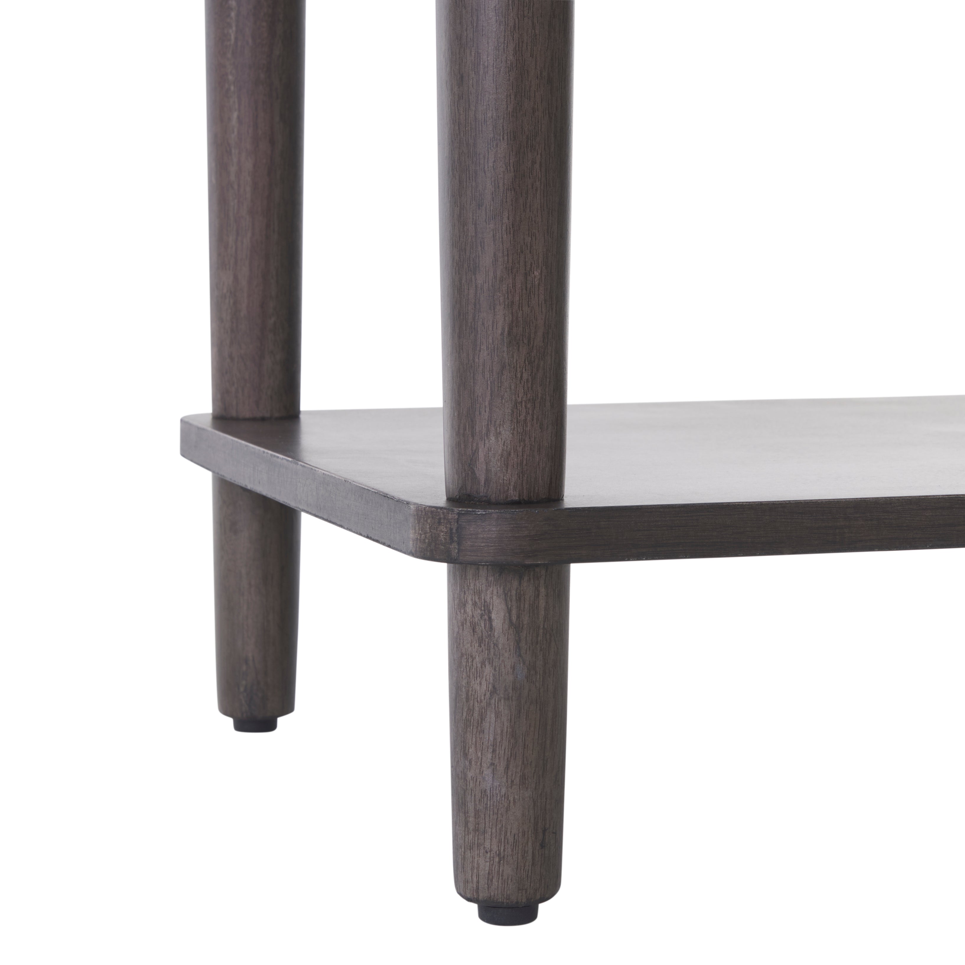 The Ambrashi End Table blends timeless elegance with functional design. Featuring a single spacious drawer for discreet storage and a lower shelf for additional display or organization, this versatile piece is ideal for bedside use or as an accent in living spaces. Its legs add a classic charm, while the clean lines open design ensure a contemporary appeal. Perfectly sized for compact spaces, the Ambrashi End Table enhances any room with its refined practicality and sophisticated style.