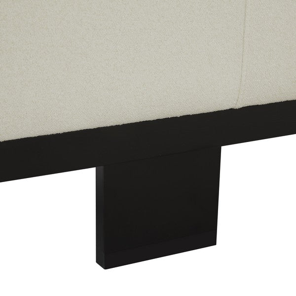 Step up any corner with the streamlined comfort and sophistication of our Abrianna bench. Combining plush upholstery with a minimalistic profile, our bench attains an effortless and welcoming presence. Its densely cushioned seat lends soft visual appeal and comfort. The seat is elevated upon an ash wood base for a perfect touch of warmth. Upholstered in a richly textured ivory-colored boucle, our bench complements your entryway, living space, or bedroom with plenty of comfort and elegance.