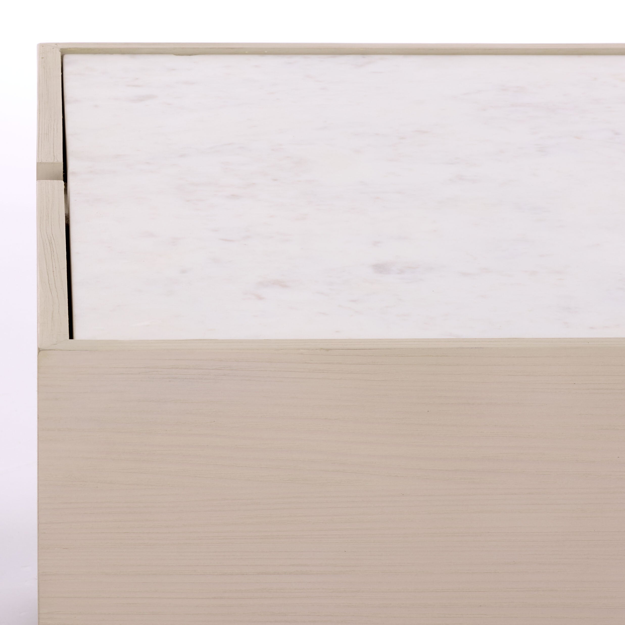 Introducing the Alanabella Marble & Wood Rectangle Coffee Table with an attractive blend of blonde oak and pristine white hues. This distinguished piece stands out with its unique combination of materials, from a body of sturdy pine wood and veneer to a stunning marble top that adds a touch of elegance to any living space. One look at the fine grain of the pine and the sophistication of the marble, and it's clear this coffee table provides a striking aesthetic and a conversation piece for your guests. Crafted with careful attention to detail, this coffee table brings together the beauty of natural elements and the convenience of modern furniture design. The Alanabella Coffee Table is not just about aesthetic. Functionality is also a key part of its appeal, meant to serve not just as a centerpiece but also as a hub for storing your favorite coffee table books, remotes, or decorative pieces. Utilize this table as a coffee server or a cocktail table for spontaneous gatherings. The beauty of the Alanabella table lies in its ability to transform your lounge or living room into a hub of comfort, conviviality, and style. Add a touch of timeless elegance to your living space with the Alanabella Marble & Wood Rectangle Coffee Table.
