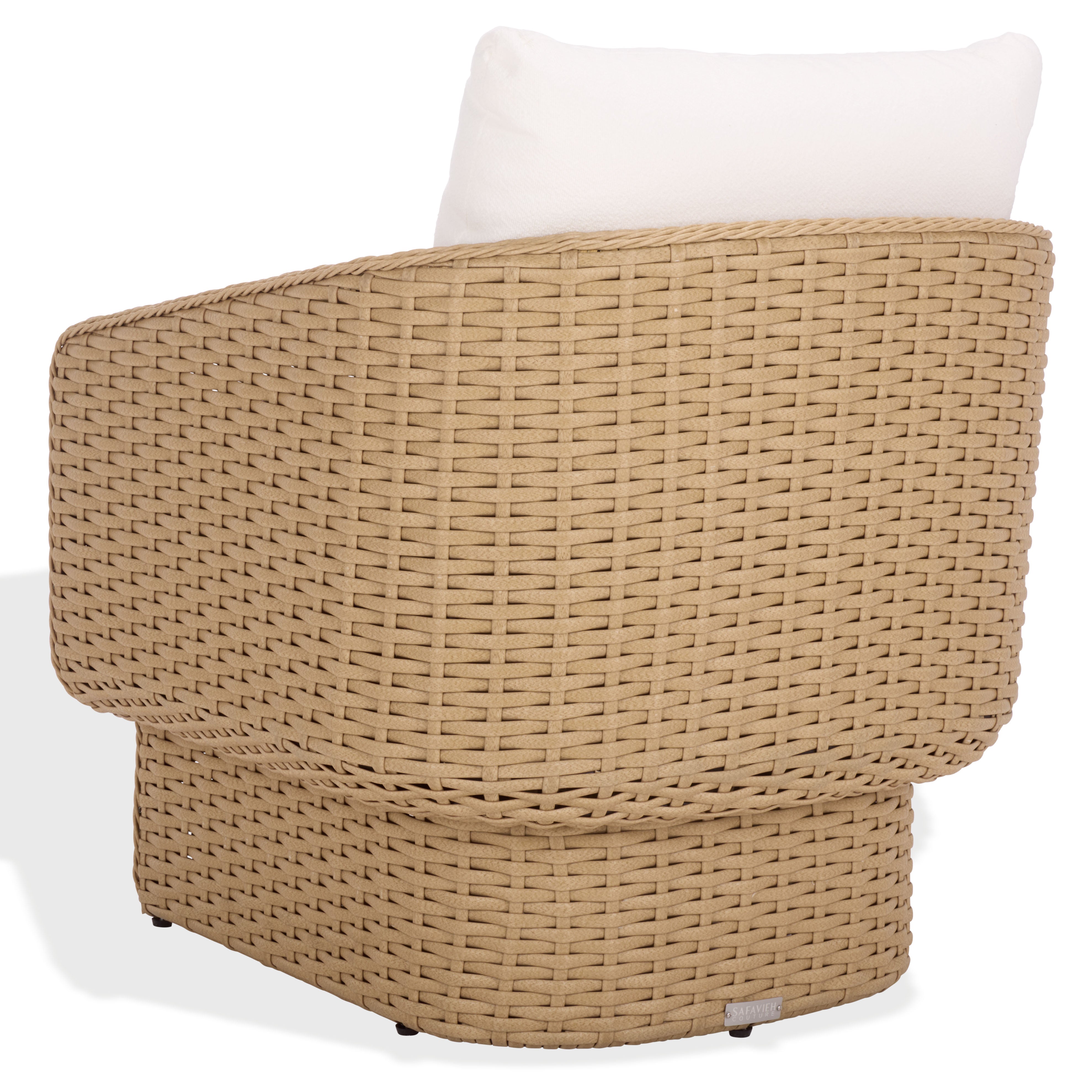 Discover the effortless style and charm of the Giuseppe rattan weaving outdoor chair. This versatile piece combines natural and white tones to create a serene outdoor sanctuary. Its sleek metal frame offers a modern touch, while the intricate rattan weaving showcases craftsmanship that enhances any space. Wrapped in soft fabric with comfortable foam cushioning, it invites you to unwind and savor the outdoors.