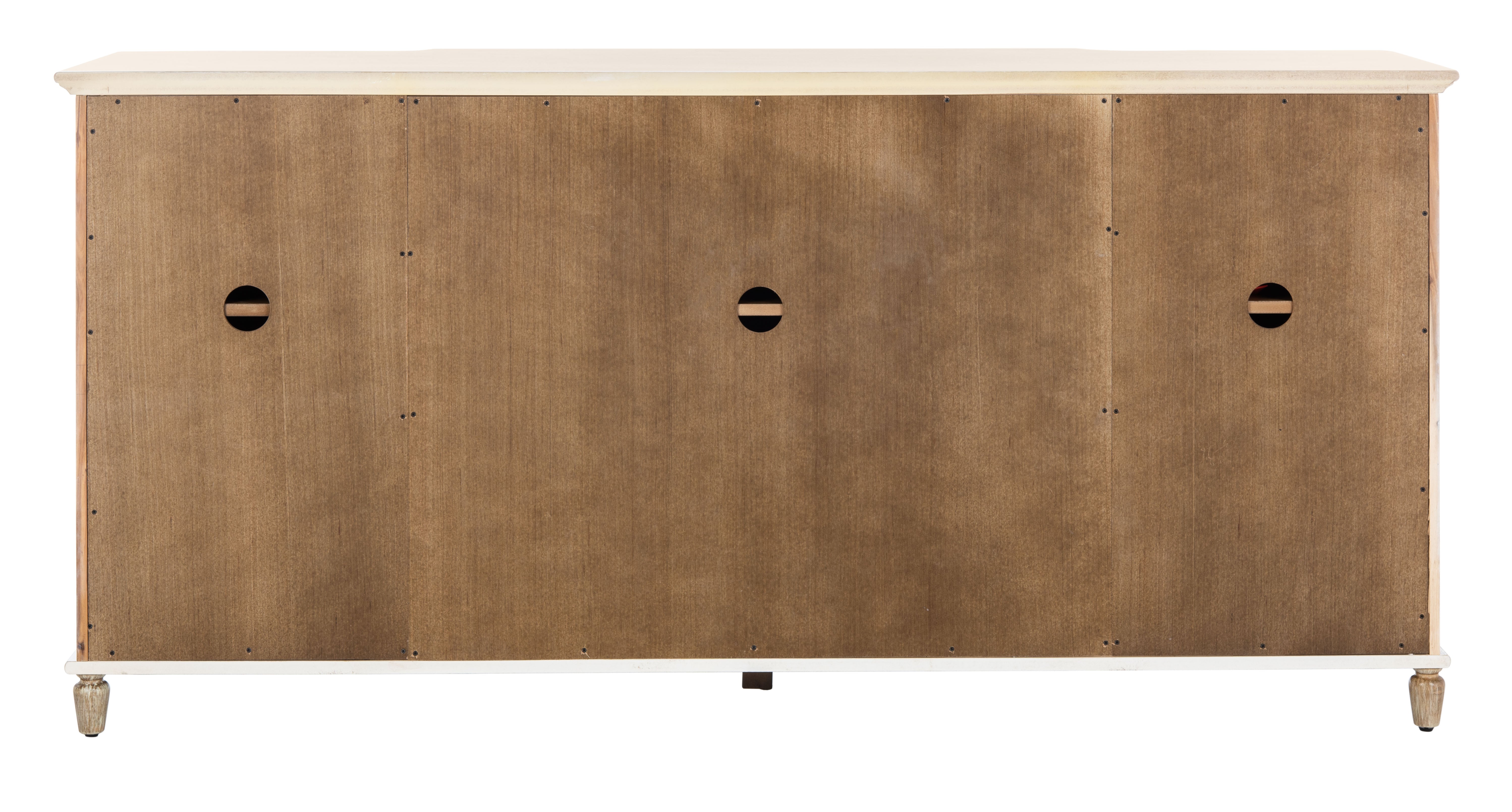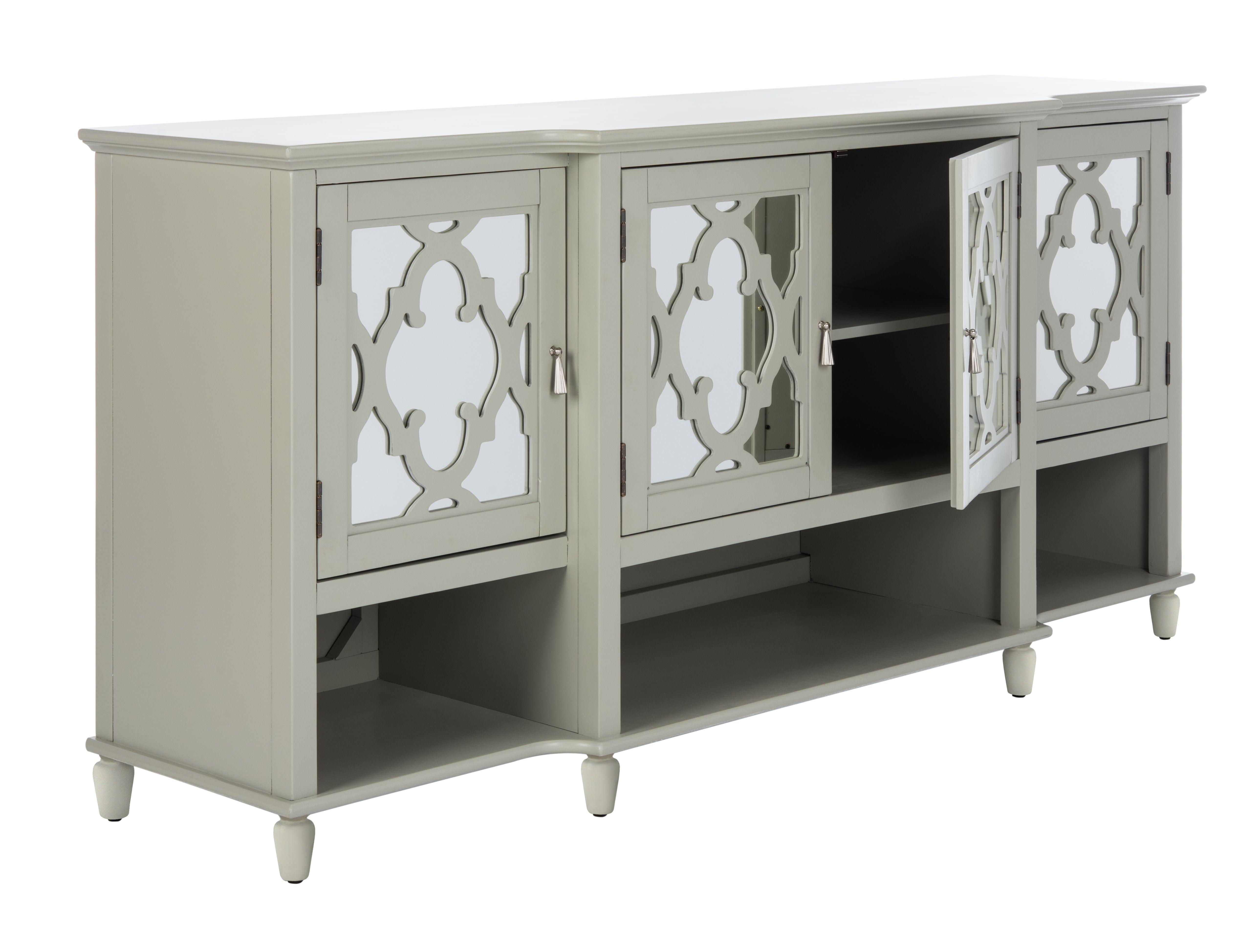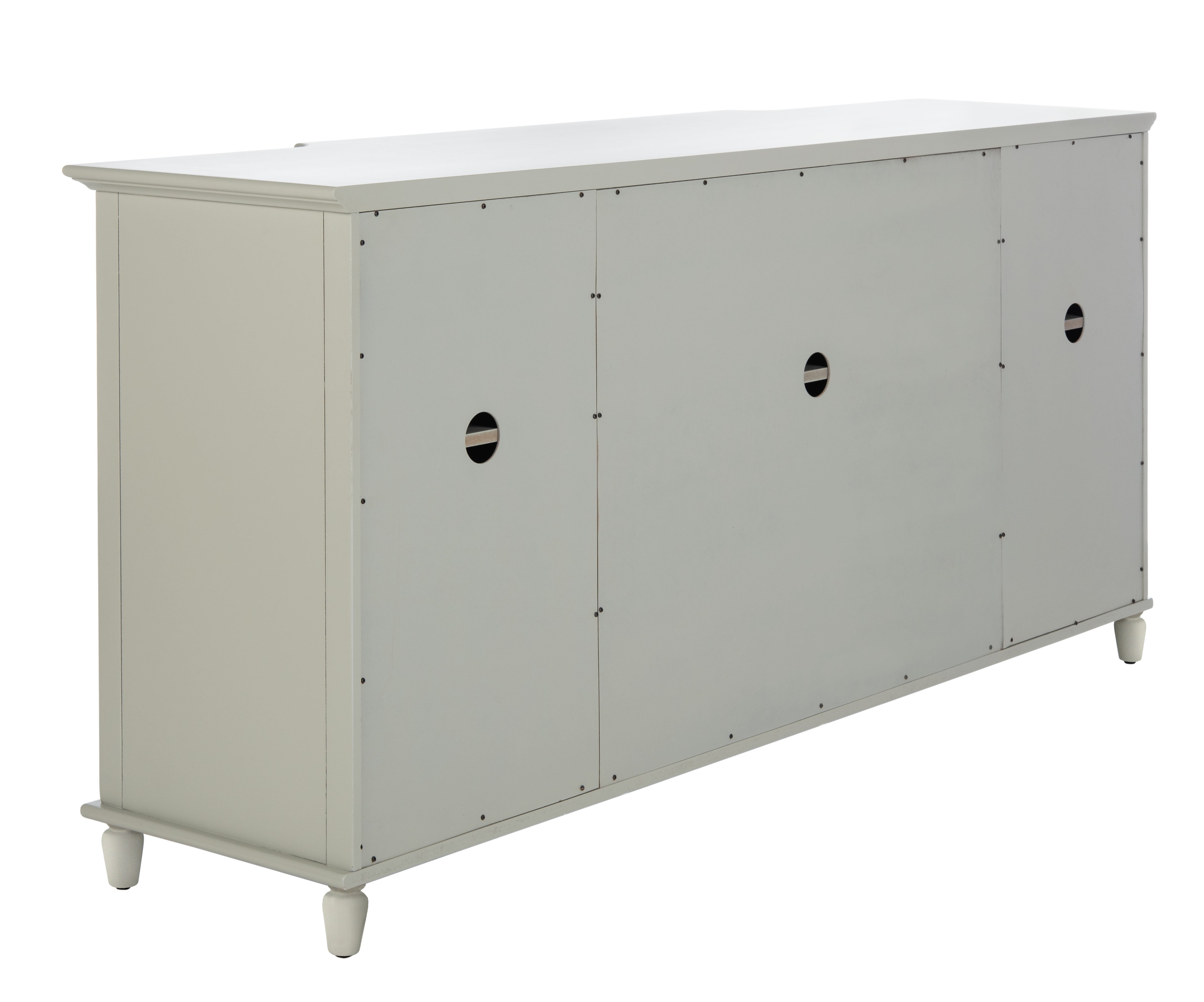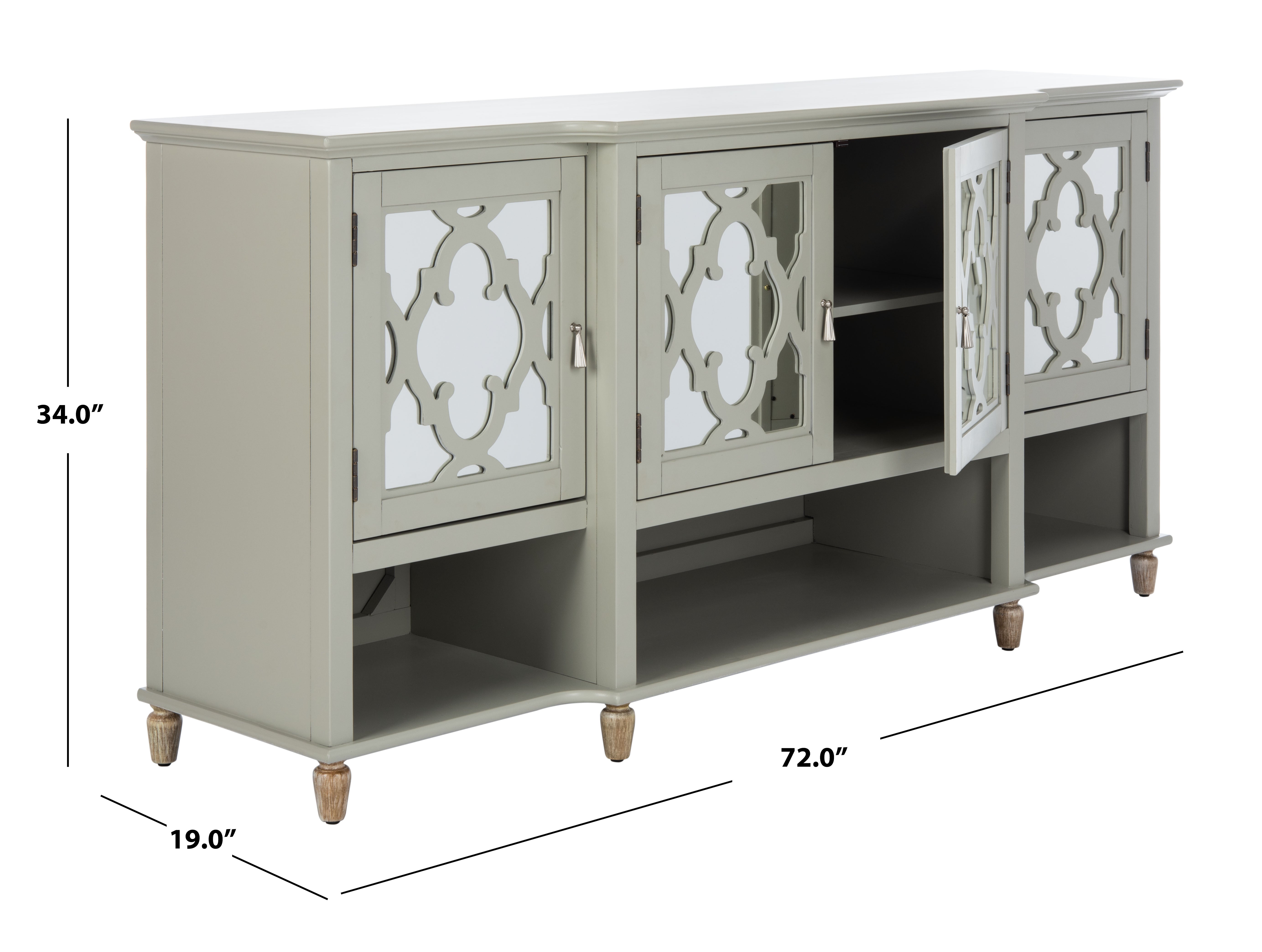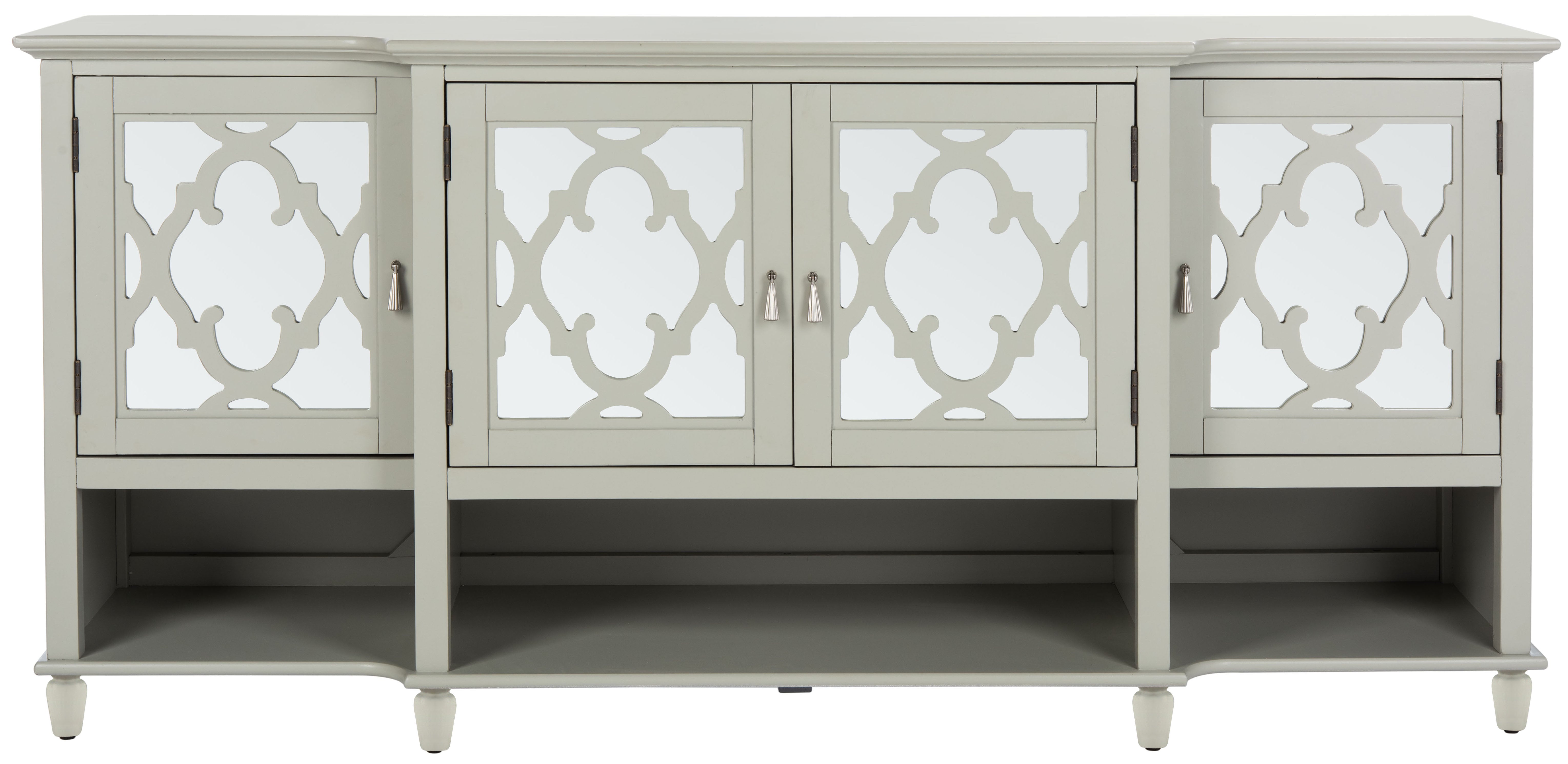 The color offers an airy and modern aesthetic, complementing a variety of decor styles. The mirrored accents not only enhance the visual appeal but also help brighten your space by reflecting light. Thoughtfully designed to balance form and function, this sideboard is an ideal addition for those who appreciate both style and practicality.