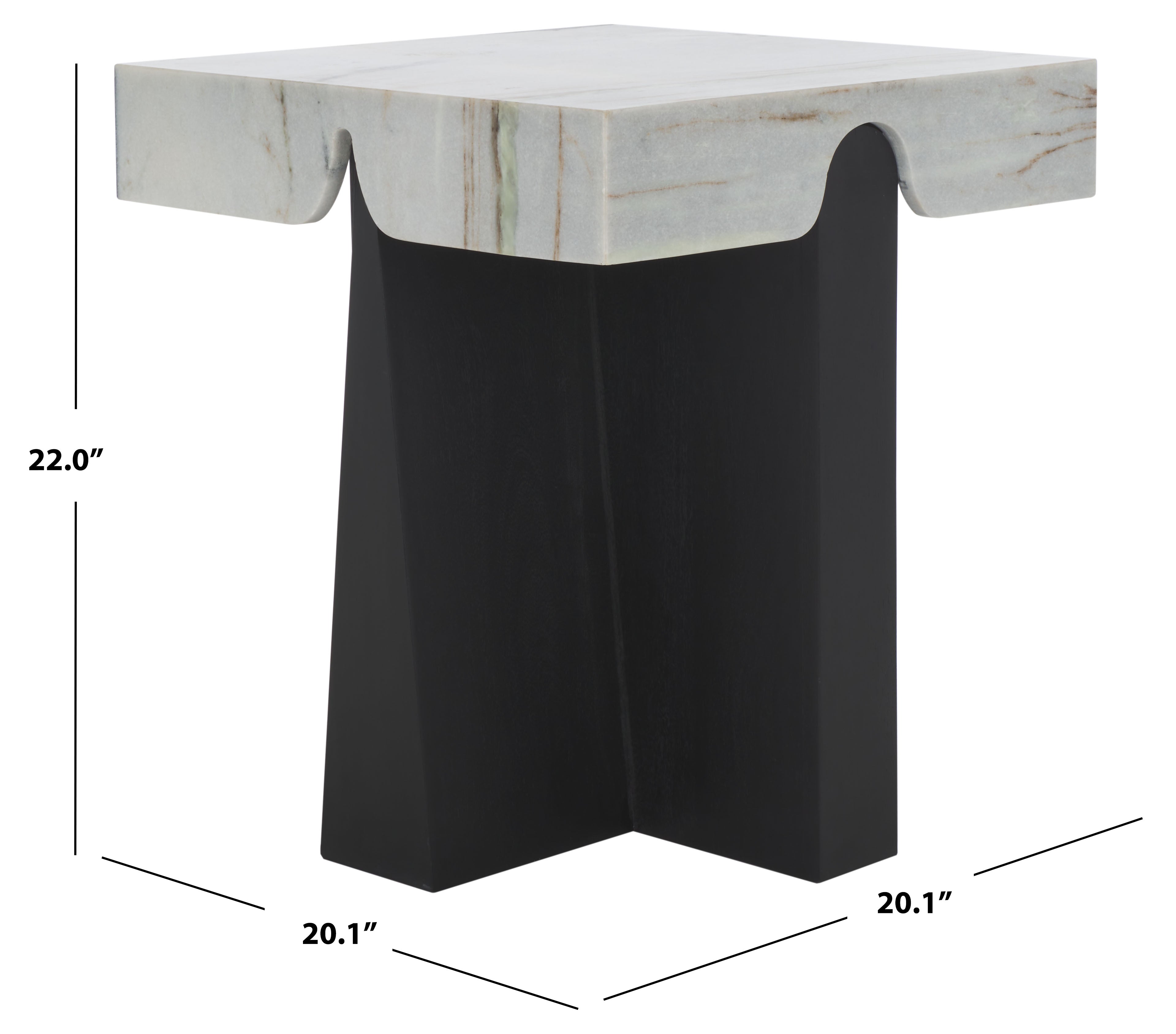 Introducing the stunning Roxandra Marble Top Accent Table, a perfect blend of style and functionality tailor-made to enhance any decor. Crafted from the finest mango wood, renowned for its durability and sustainability, this accent table is designed with an elegant black finish that greatly bolsters its appeal. The crowning glory, however, is the beautiful white marble top, which not only adds an air of sophistication, but is also convenient and easy to clean. This black and white contrast embodies a harmonic balance, resulting in a timeless piece that effortlessly fits into a myriad of room aesthetics. Paired with its unbeatable resilience, the Roxandra Marble Top Accent Table is indeed a stunning blend of form and function. Whether to showcase your treasured collectibles or house your favorite reads, it's an investment that uplifts your space whilst serving practical needs.