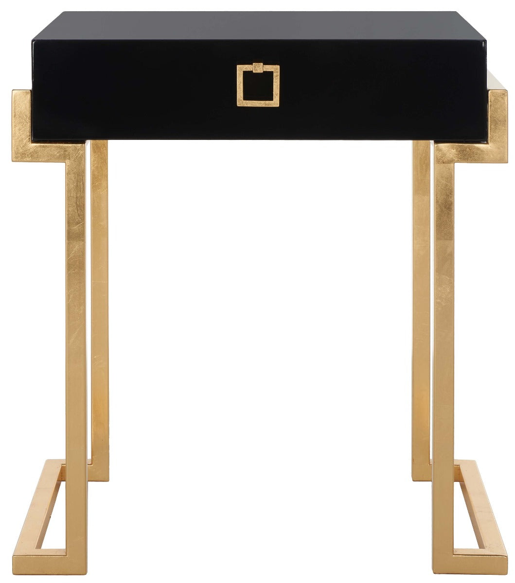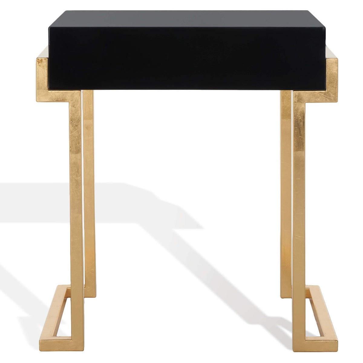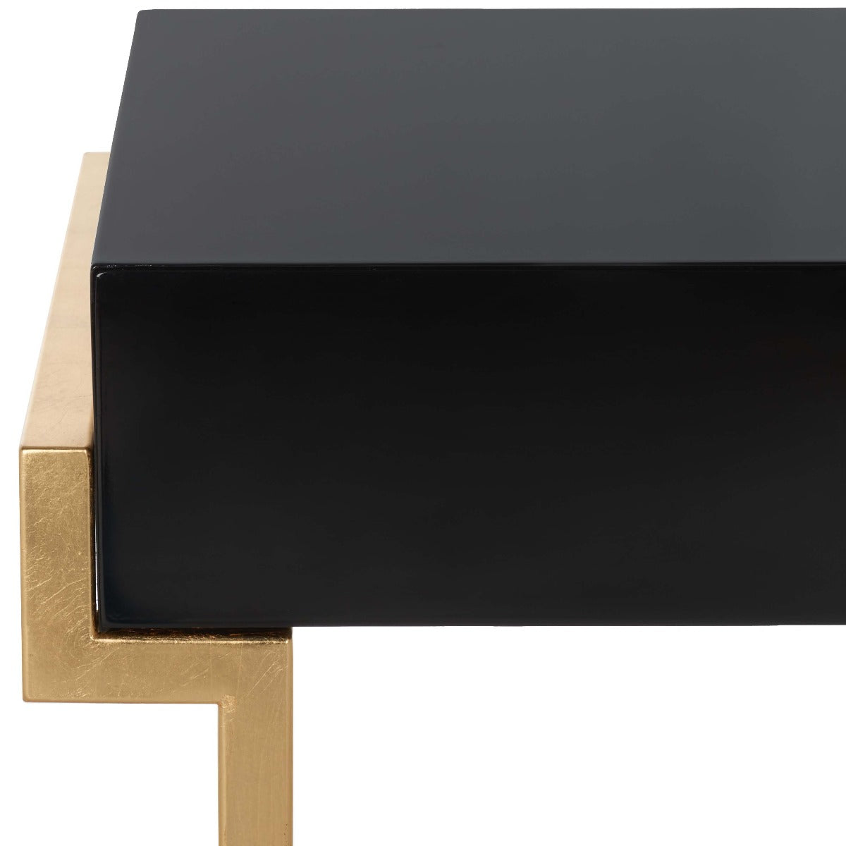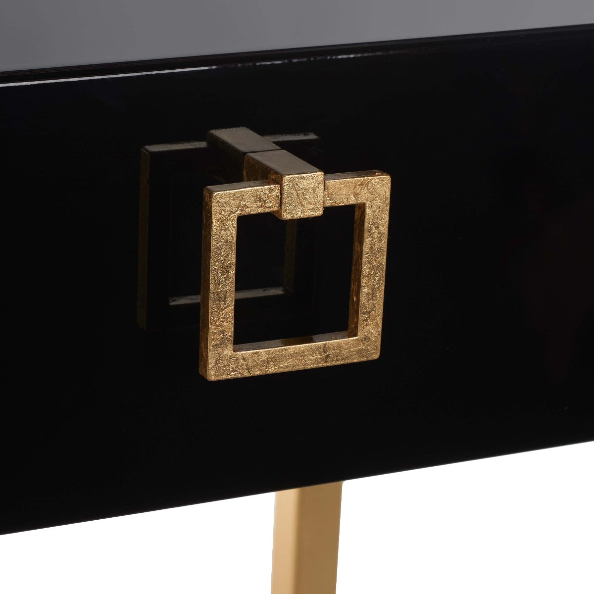 Embrace the new traditionalist style with this modern accent table. Its classic black hue shines with its sleek lacquer finish and svelte gold legs lend instant glamour to any interior. Its exquisitely detailed brass hardware makes it a modern heirloom.
