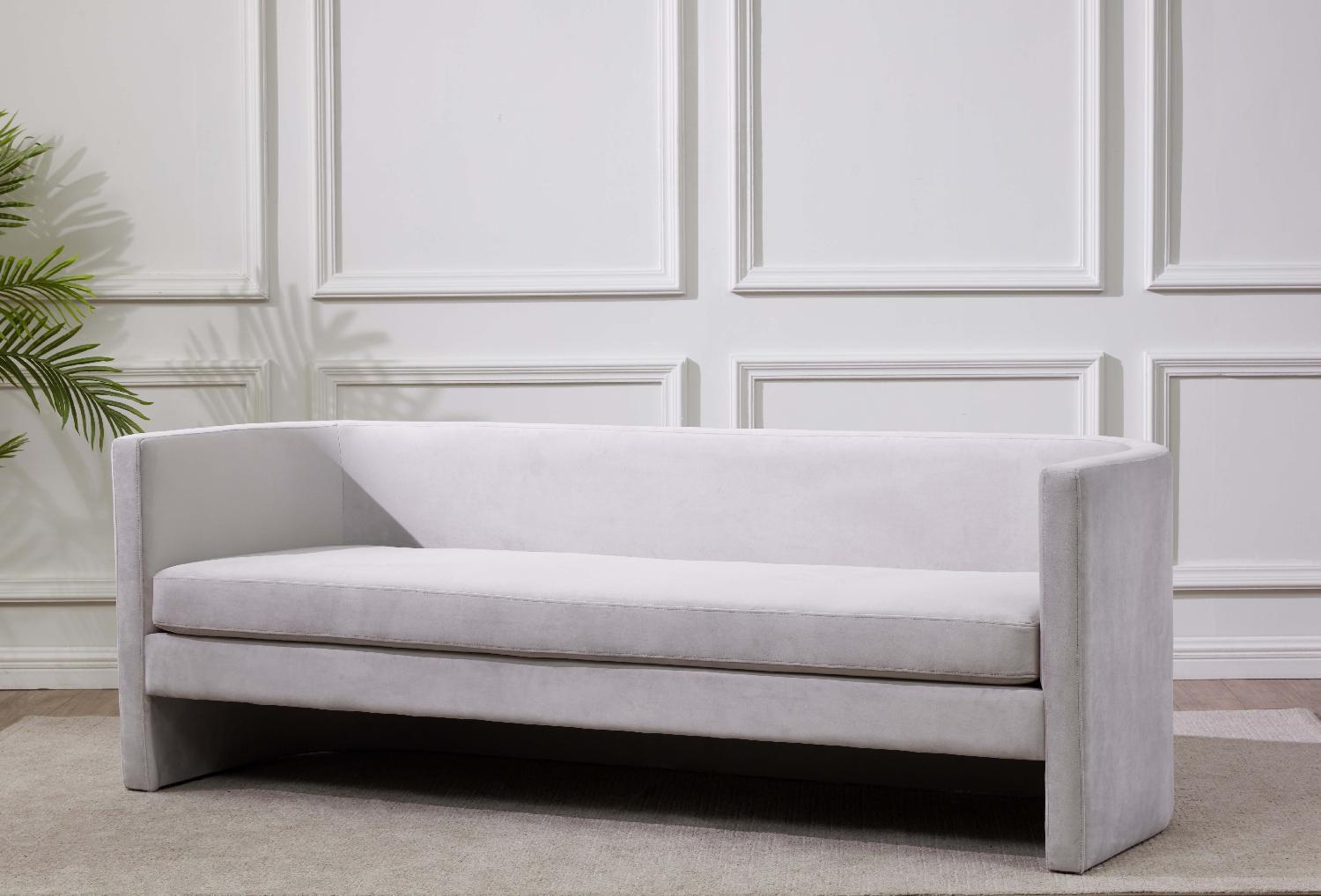A modern take on Old Hollywood glamour, this Rosabeth Sofa punctuates any room with distinct couturier chic. Ideal for today's cosmopolitan interiors, Rosabeth's plush light grey velvet is simply luxurious, perfectly spotlighting its curved wraparound silhouette and eye-catching open base.