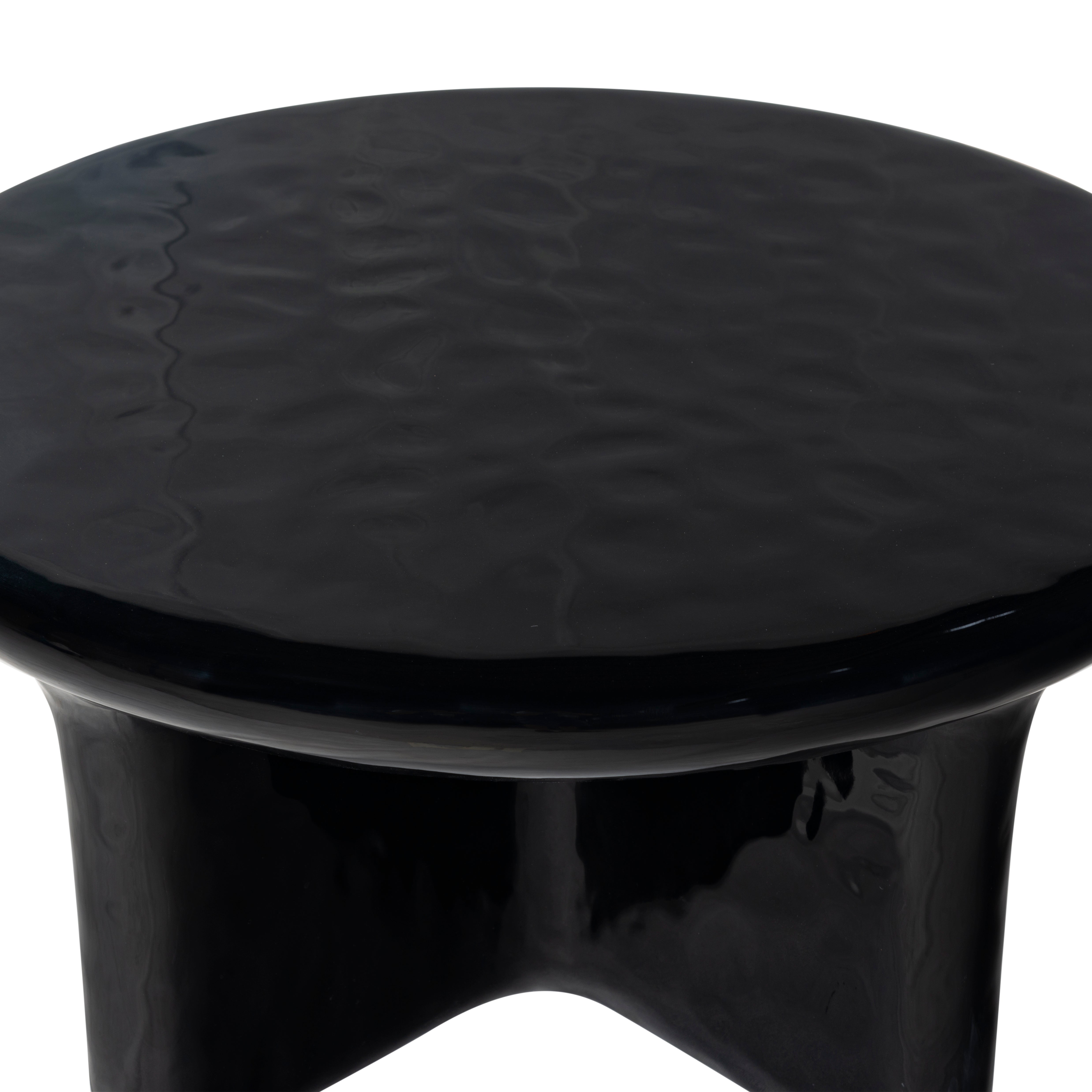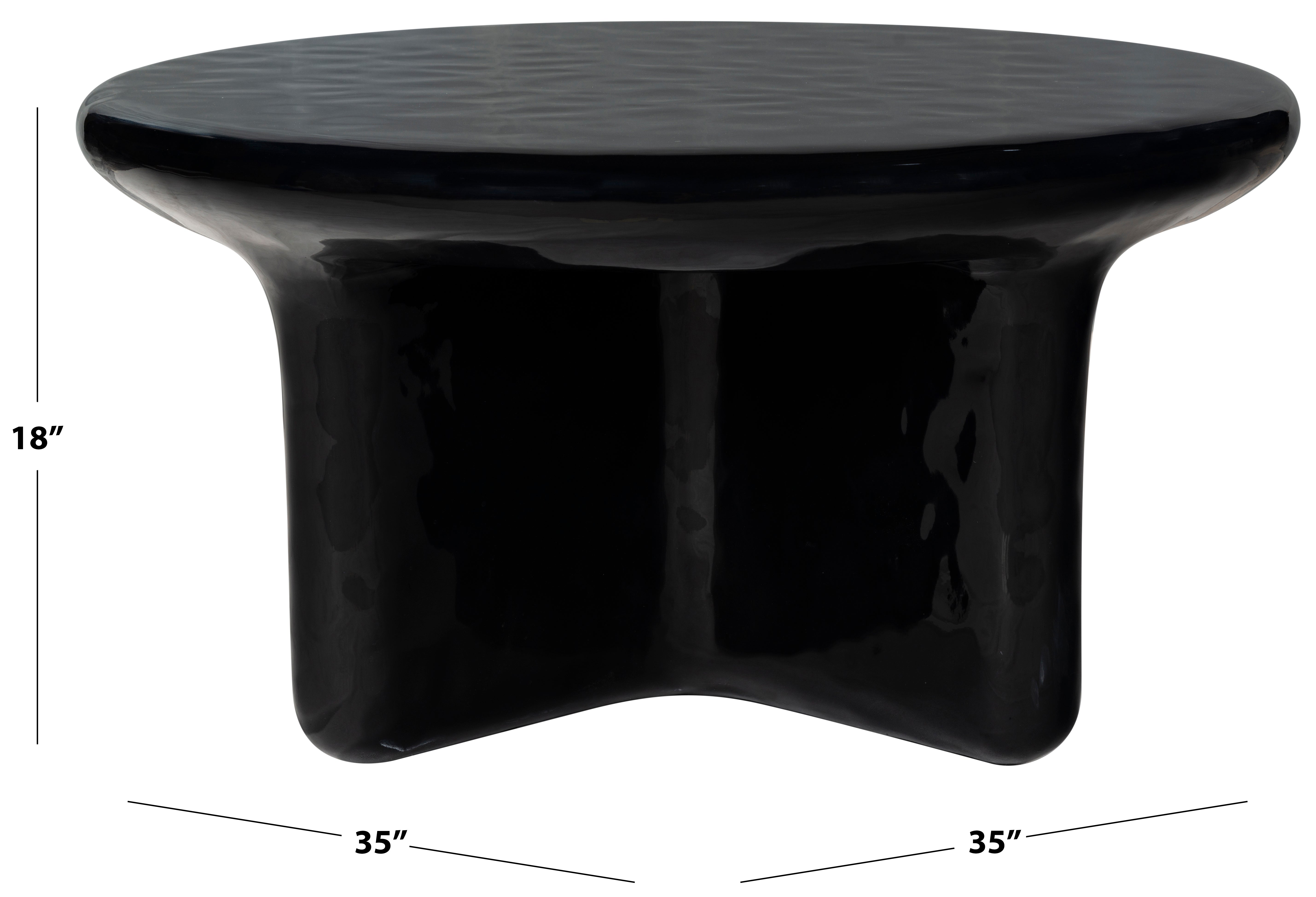 Introducing the Tressarose Round High Gloss Finish Coffee Table in stunning black. This elegant piece is designed to make a statement in any room with its sleek and modern look. Crafted from durable cast Gfrc concrete, it features a high gloss finish that adds a touch of sophistication to your living space. The table's smooth and reflective surface provides an attractive focal point that pairs beautifully with various decor styles.