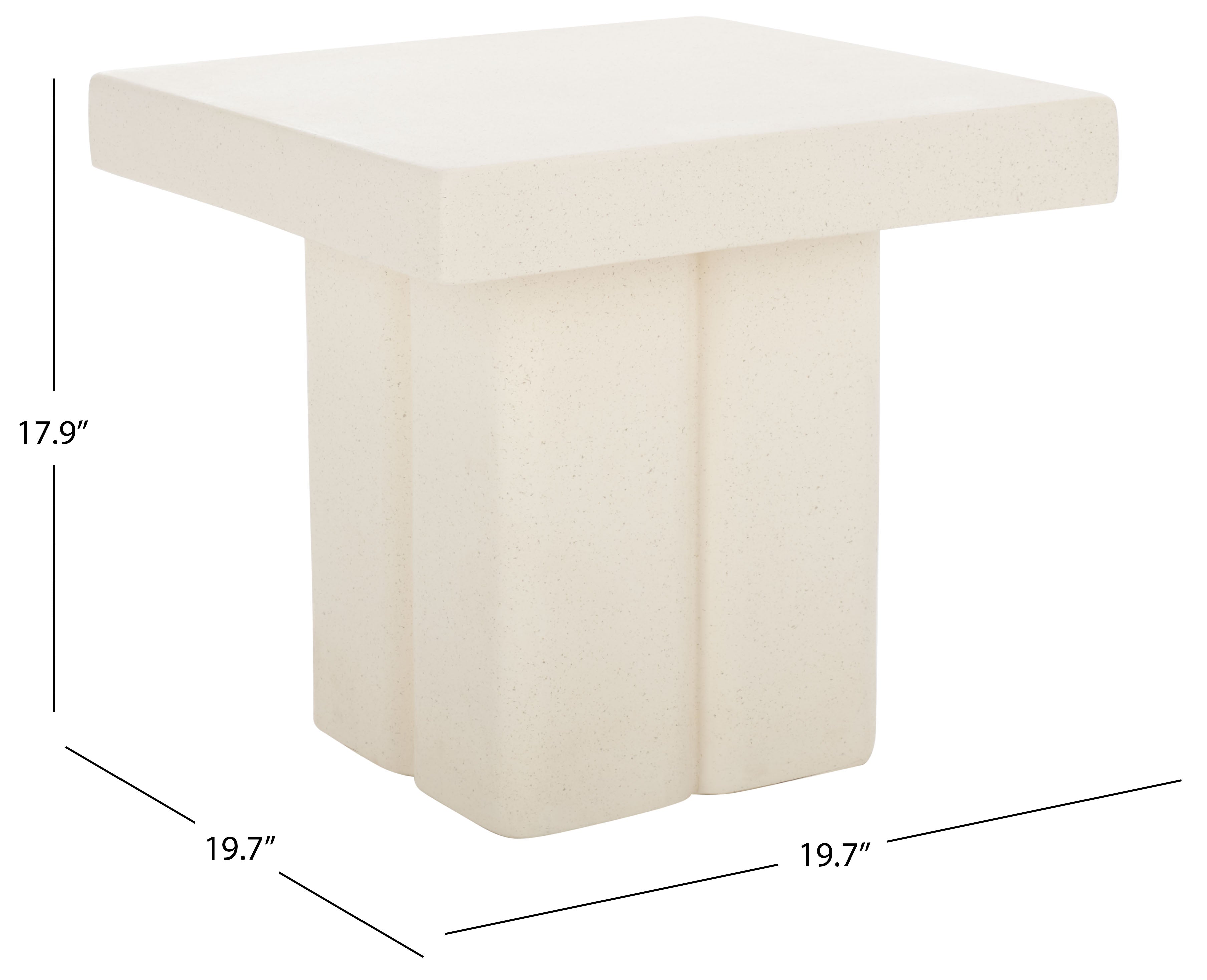 Invite modern drama to your home with our charming Oaklyn square accent table. Our clean-lined accent table stands outs with its shapely and voluminous profile. Its chunky square tabletop attains an eye-catching stature resting upon a pedestal. The pedestal is softened and beautifully detailed to add definition and interest to our stunning accent table. It features a subtly textured and plaster-like white finish to sit easy and gracefully in your bedroom, living space, or home office. The accent table can provide the perfect perch for your essentials and decor items.
