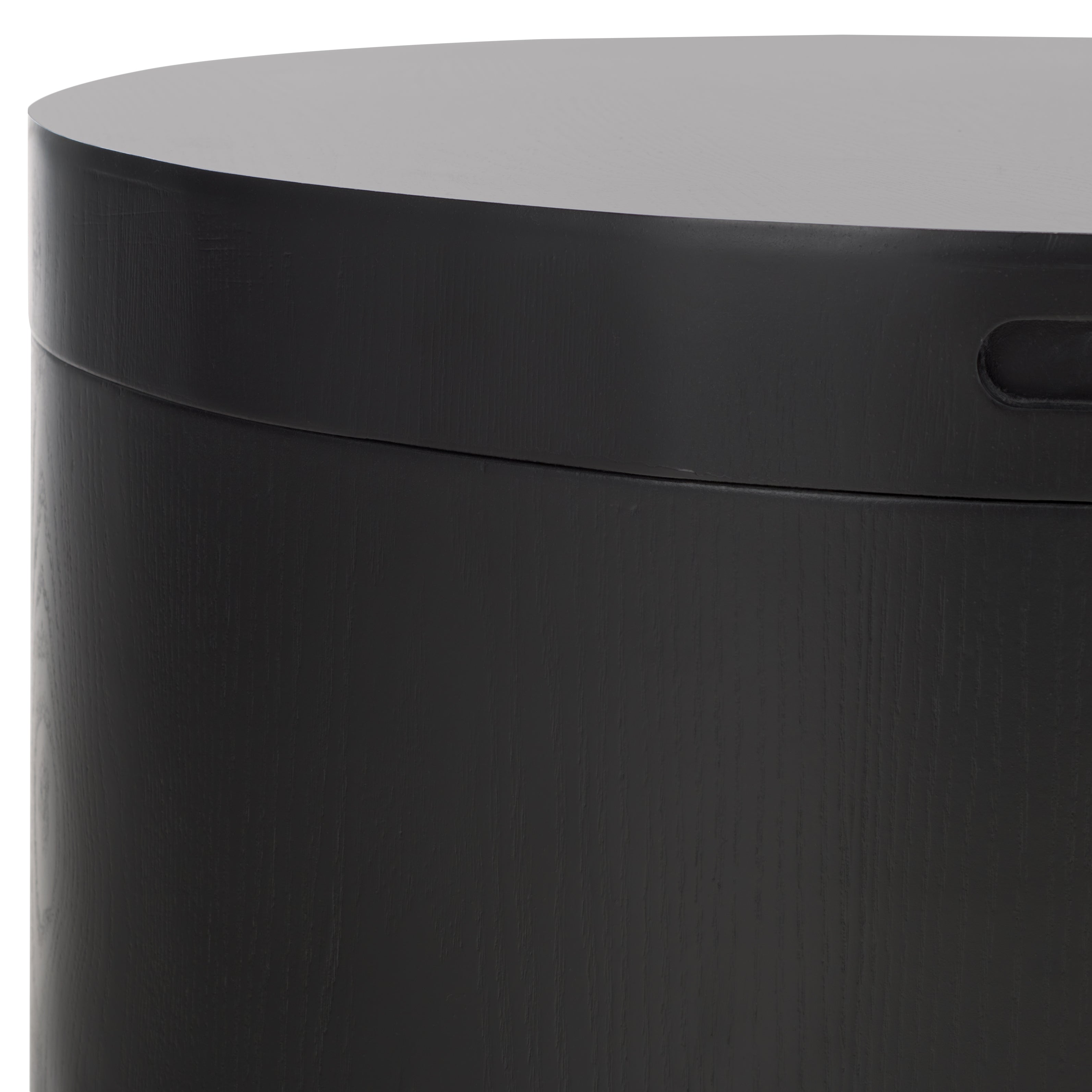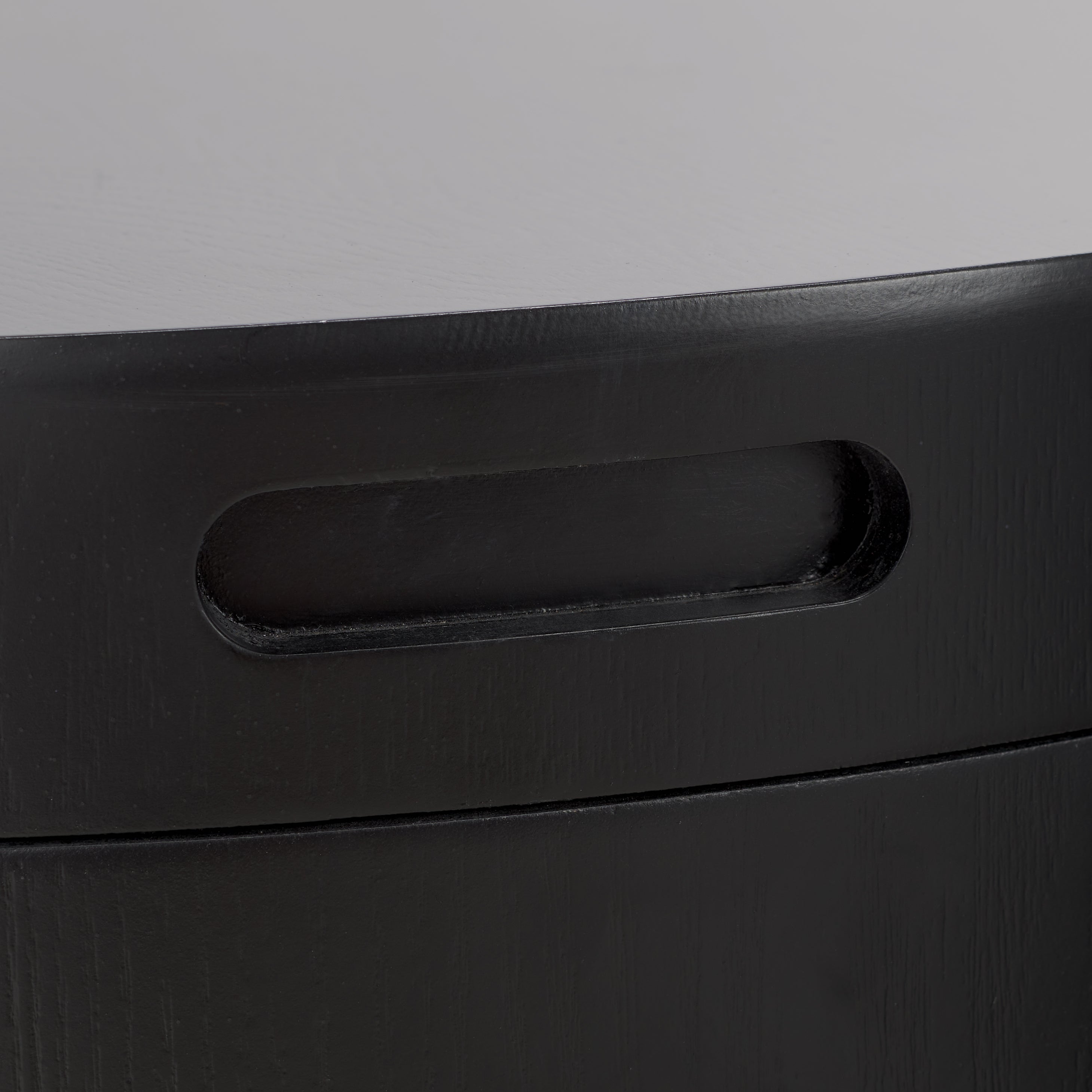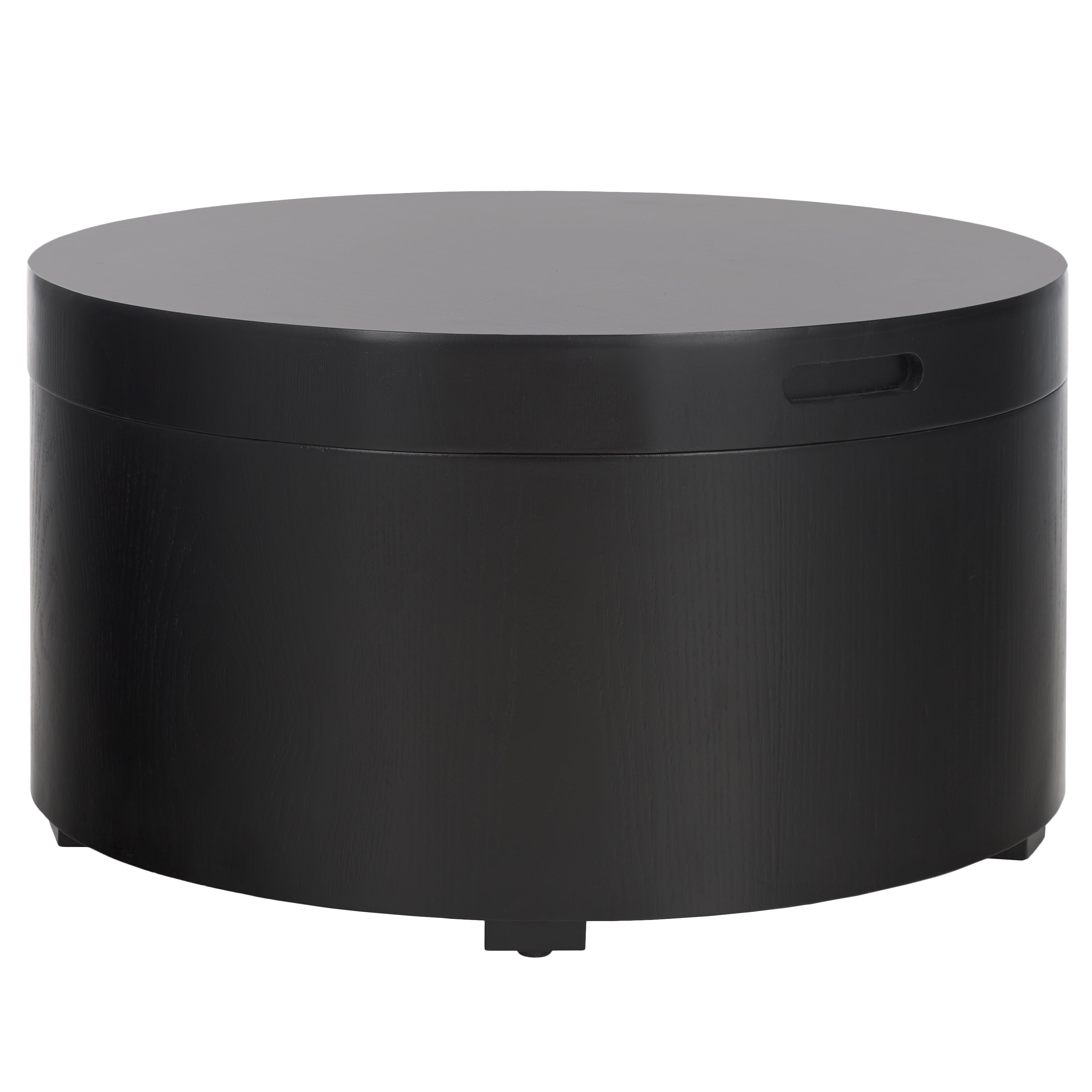 Anchor and organize your living space in style with our Rafaela tray-top coffee table with storage. The sleek and modern profile of the table packs maximum functionality to serve as a handy and welcoming addition to any room. Its cylindrical profile is updated with rich grains of wood in a sleek black finish. The top includes inset handles and can be easily reversed to serve as a tray-top table, perfect for serving and entertaining. The coffee table also includes storage underneath to hold your magazines, pillows, gaming console, and all other knick knacks.