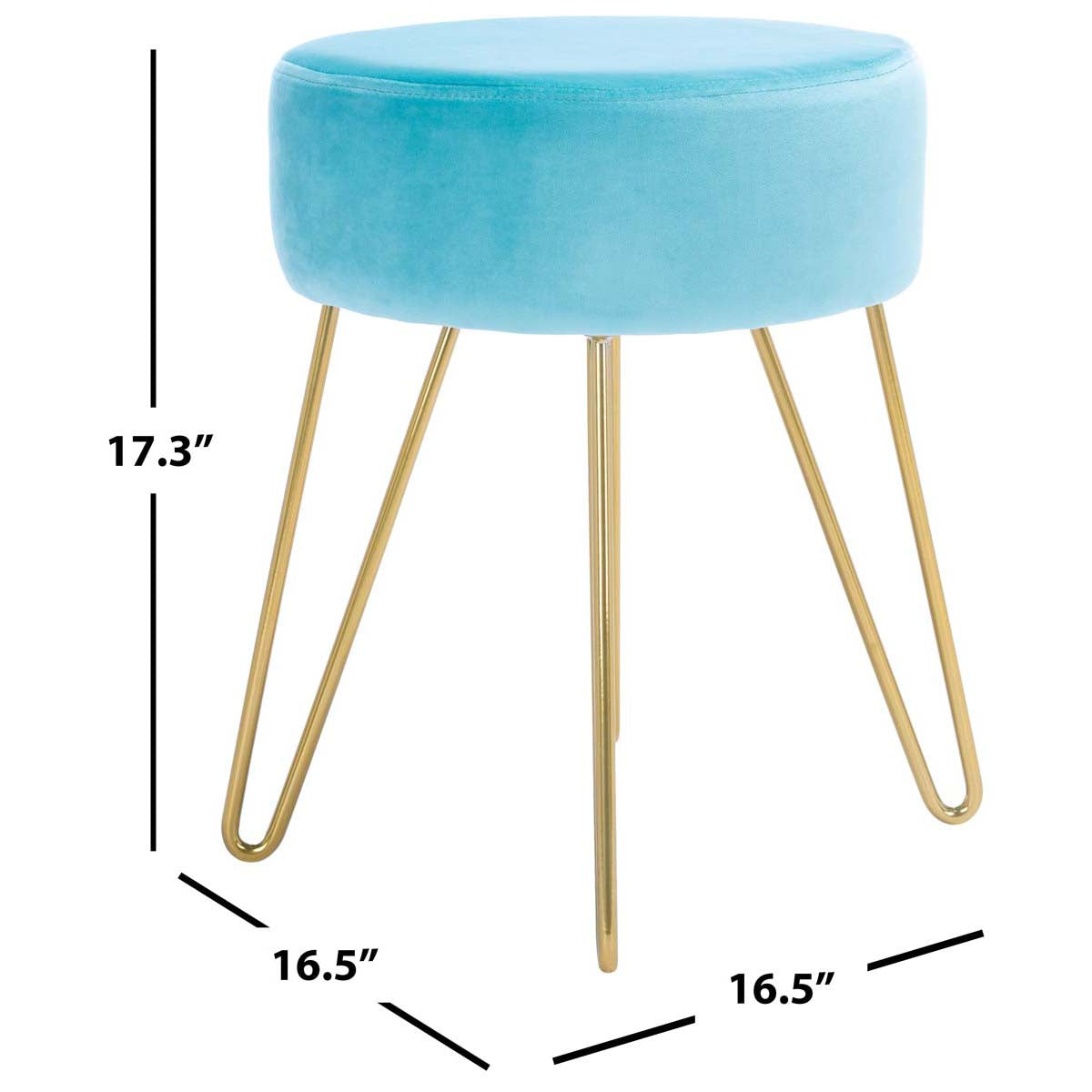 Mid Century charm gets a glamorous makeover in this Abrea Round Ottoman. Open hairpin legs in a sleek gold finish pair beautifully with Abrea???s plush aqua velvet seat, making it ideal for enlivening any room with a pop of color.