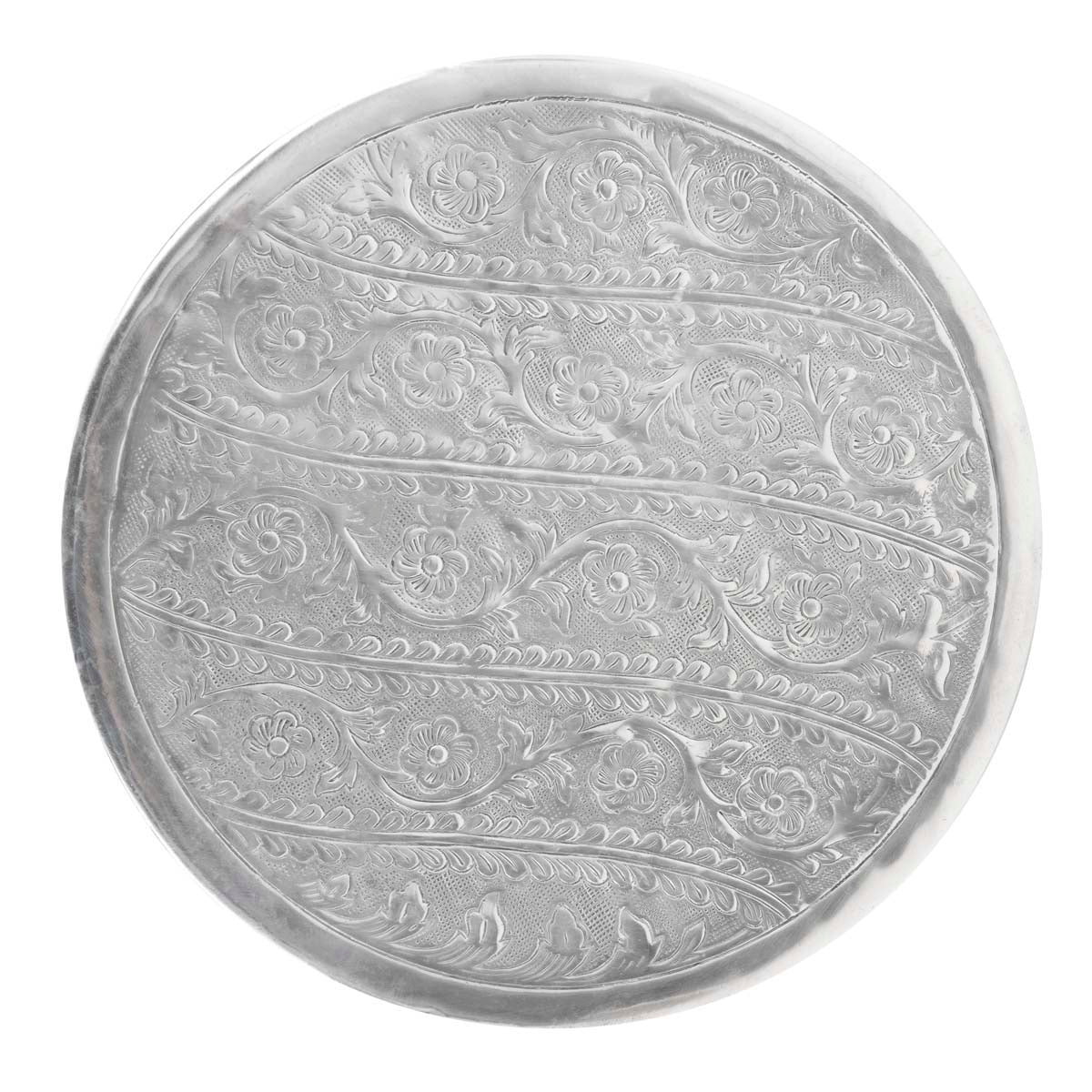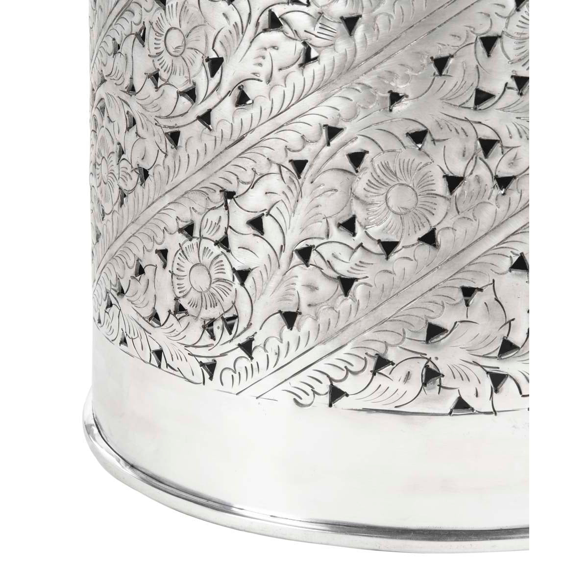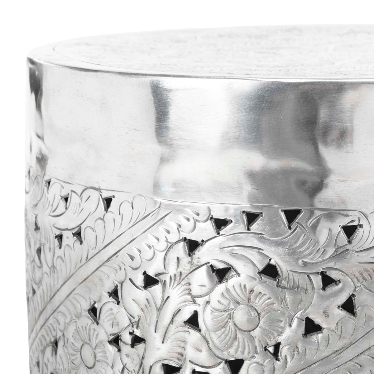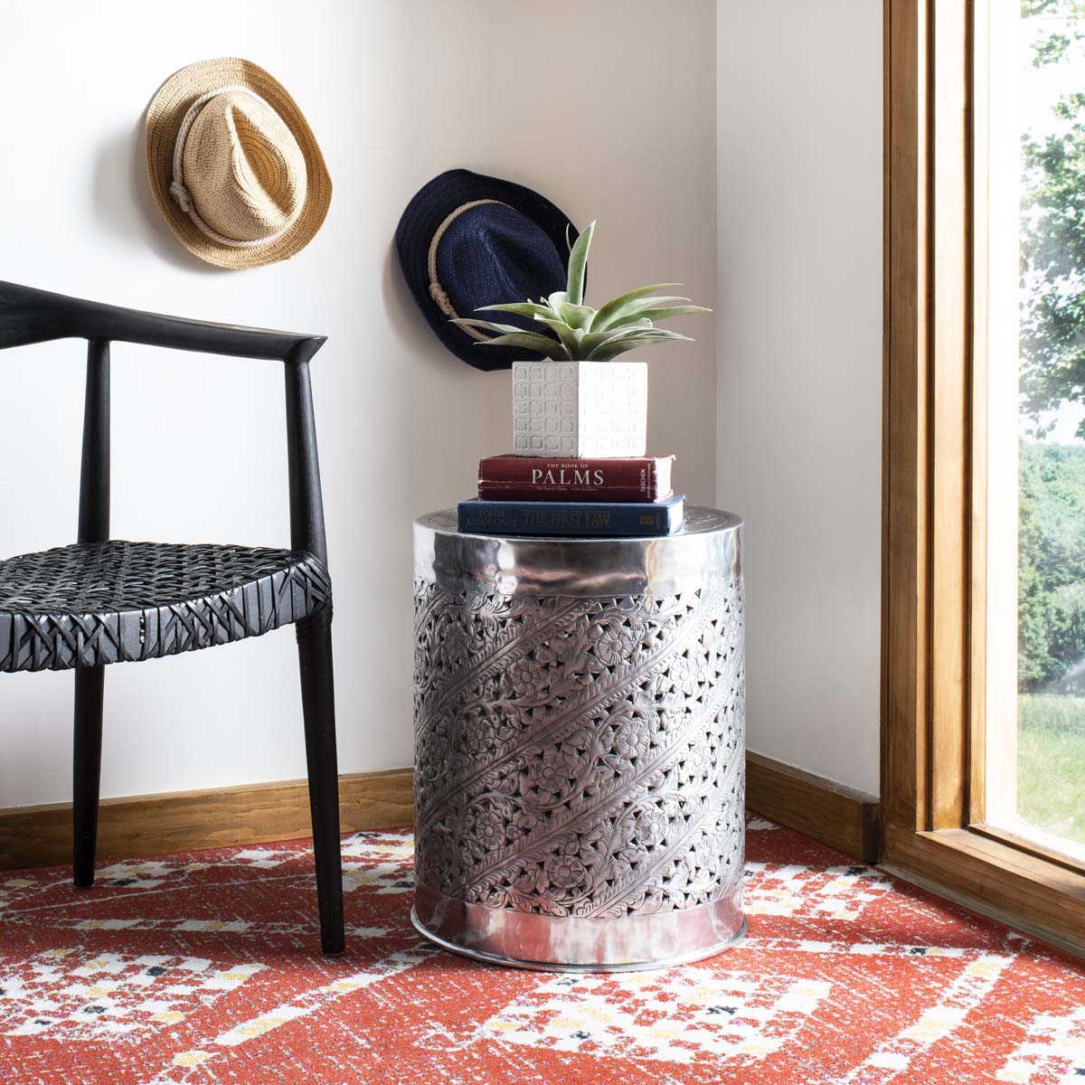 Dynamic and luxurious, this contemporary end table updates any living room with its sophisticated style. Its stunning silver finish and intricate pattern create a fresh and classic design. Use on either side of the sofa or next to your favorite chair.