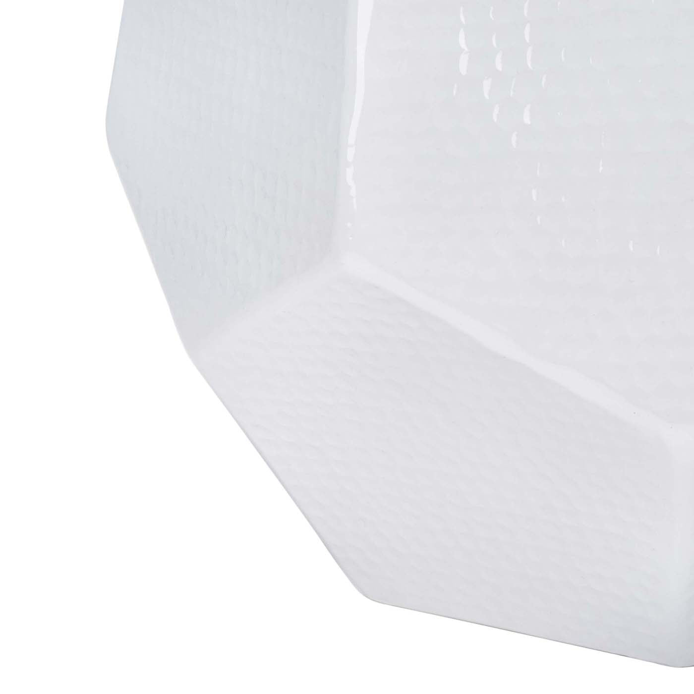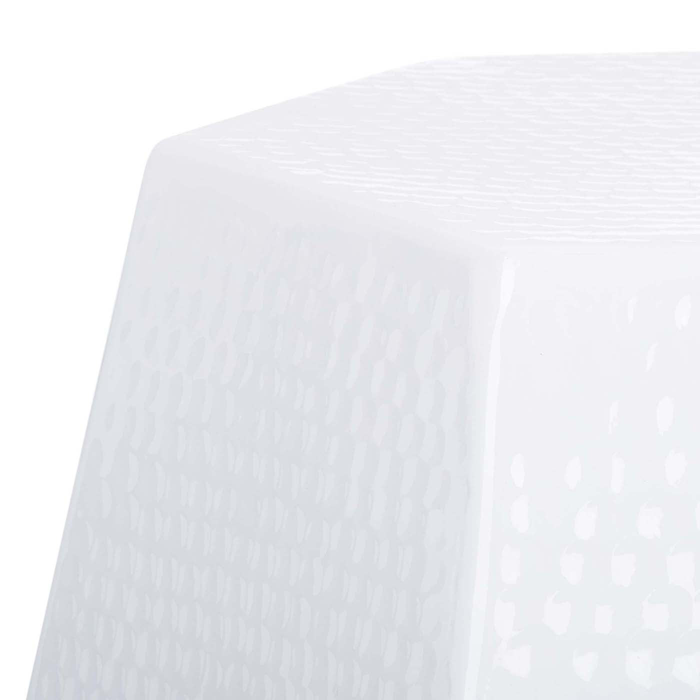 This Tantlum Stool?? hexagonal shape brings six times the charm, but its clean white finish means that Tantlum's modern flair is infinite, enhancing the decorative elements in any room. Designers are obsessed with Aidan?? hammered texture.