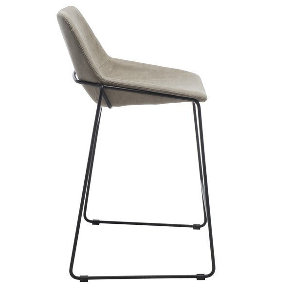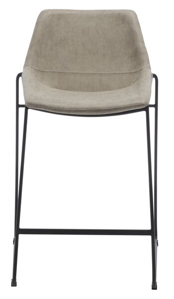 Elevate your entertaining with this Alexis Mid-Century Counter Stool. Designed for the modern host who appreciates a touch of retro style, Alexis?? stone grey vegan leather perfectly accents any decor while providing a comfortably smooth seat for you or guests. Black hairpin-inspired legs give a designer-smart touch.