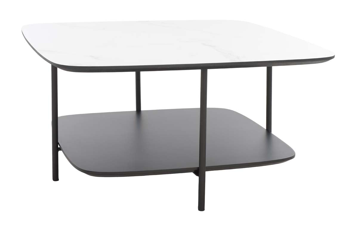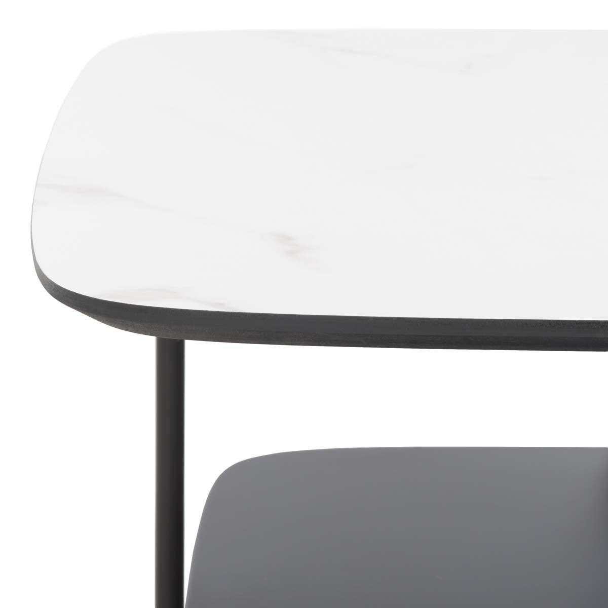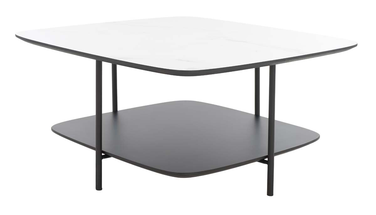 Enrich Any Room With This Anzia Coffee Table, Boasting A Skillful Blend Of Sleek Modern Minimalism And Contemporary Elegance. Two Asymmetrical Tiers Are Ideal For Storage And Display In The Living Room While Providing Unique Tonal Intrigue With Its White Marble Finished Top And Jet Black Lower Shelf.