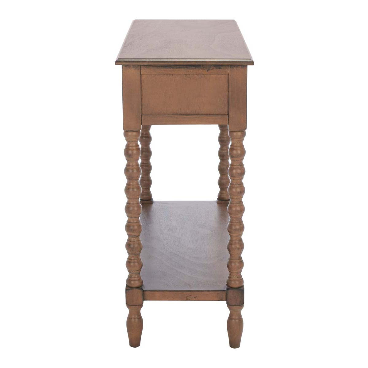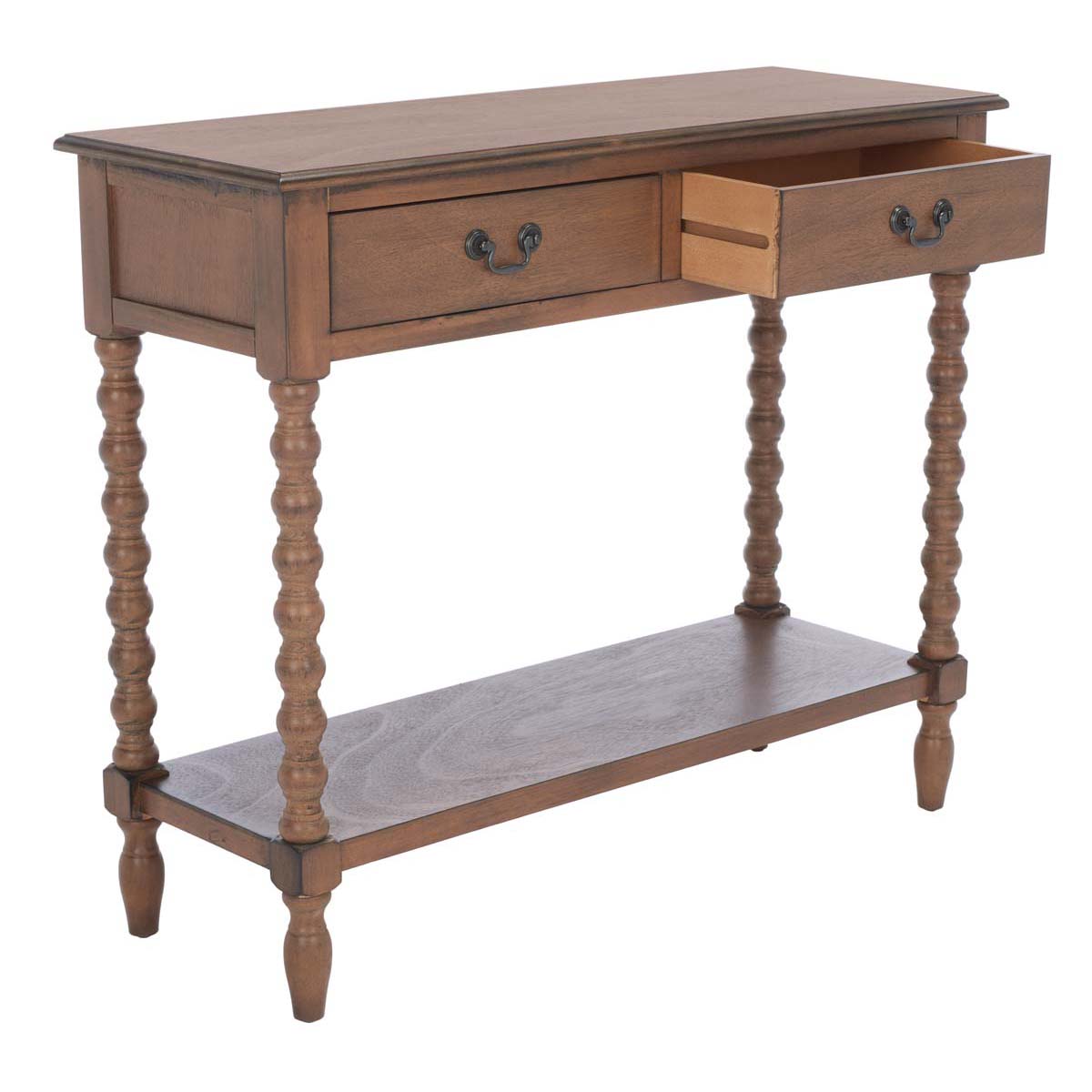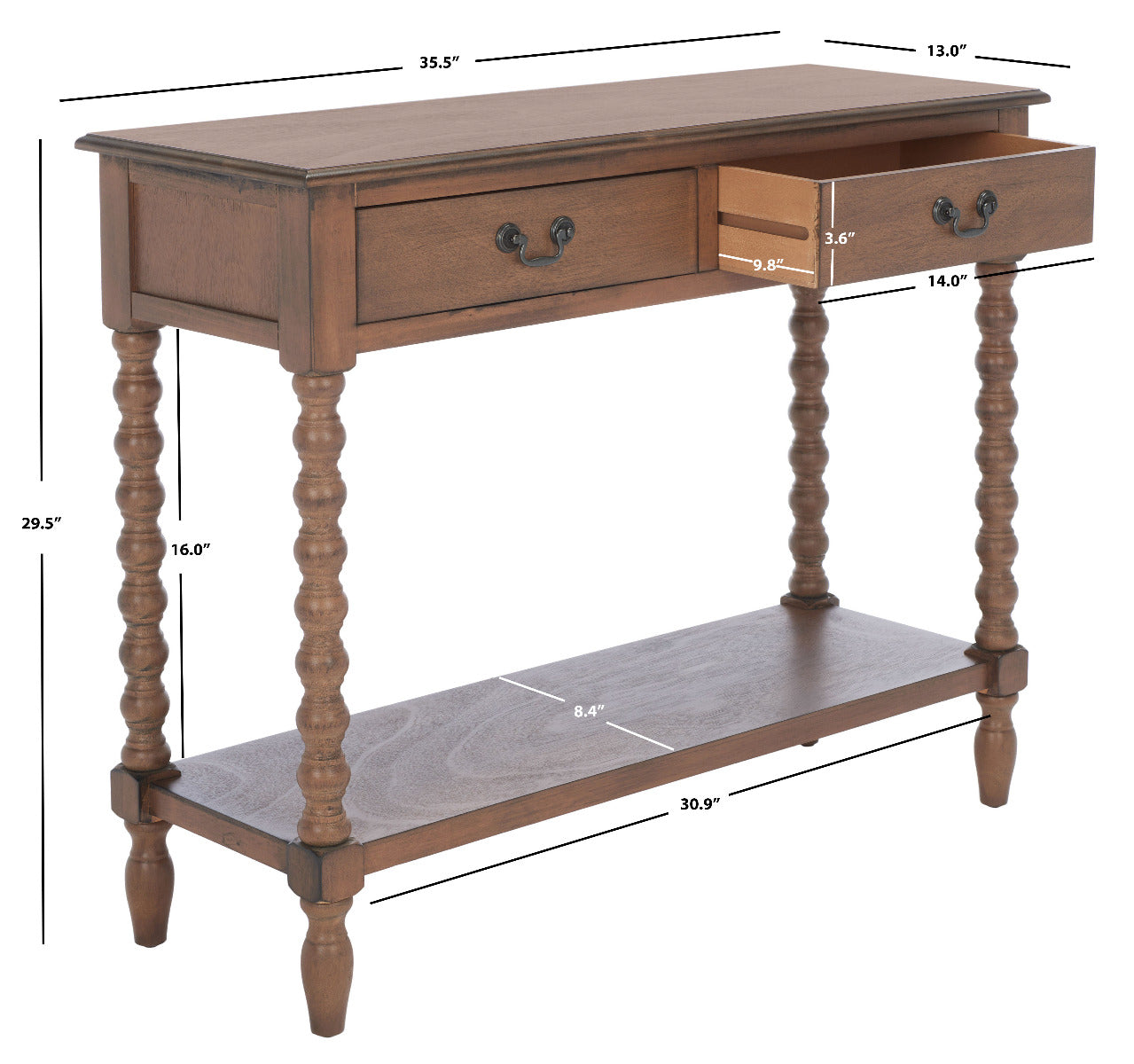 Bring farmhouse charm to any classic contemporary d?cor with this Athena Console Table. Athena?? modernized ball turned legs are beautifully highlighted by its rich brown finish, while an open bottom shelf and twin slim drawers provide ample storage and display space.