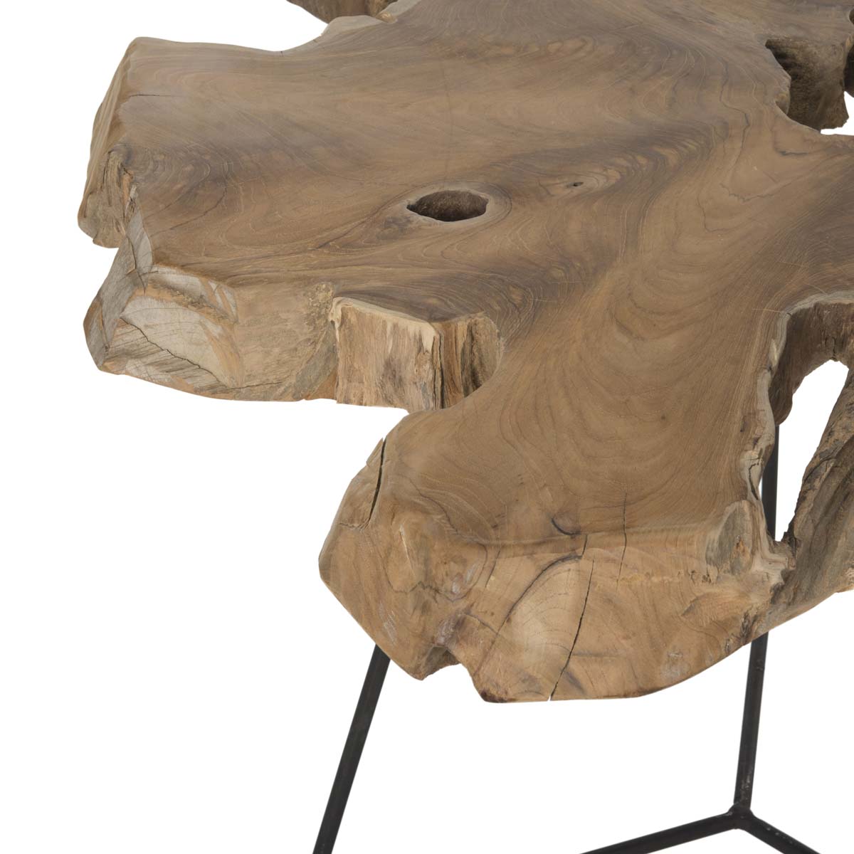 Rustic chic meets eclectic elegance in this Babylon Coffee Table, combining a natural found wood top with a sleek modern base. A masterpiece of nature for indoor spaces, each table is slightly different with its own grain variations and patterns.