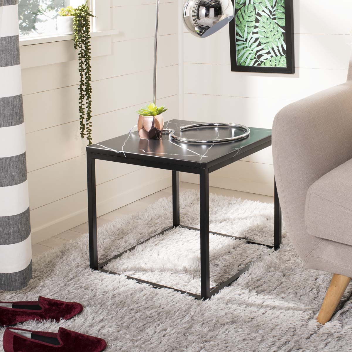 This Baize End Table is a chic study in modern luxury. Its smooth black marble top brings classic style to its updated Parson's style frame. Ideal in any living room, designers love to use them in pairs.