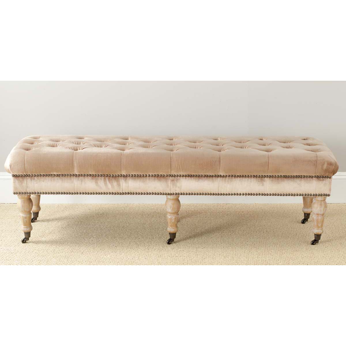 Safavieh Barney Tufted Bench - Brass Nail Heads - Champagne