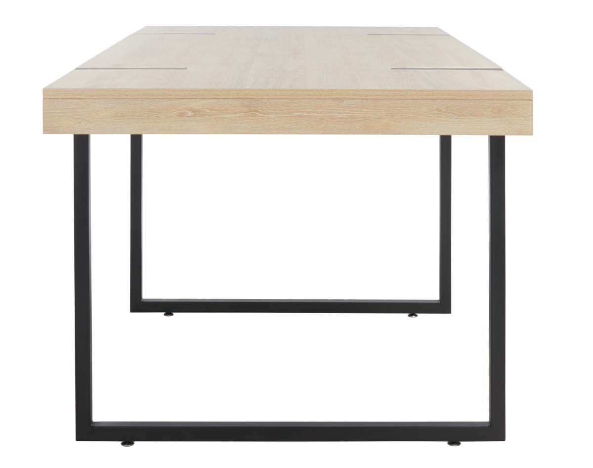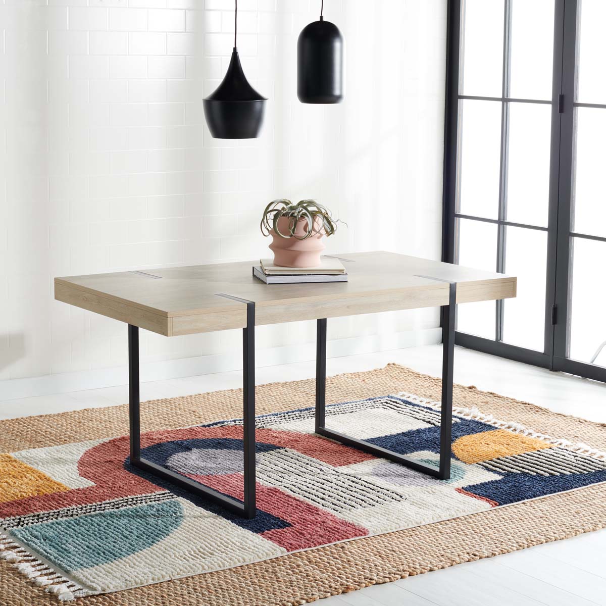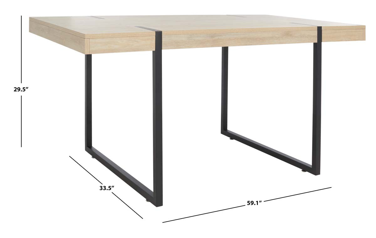 Embrace The Effortless Style And Charm Of Our Cael Dining Table. Defined By Clean And Crisp Lines, Our Dining Table Features A Thick Rectangular Tabletop. Its Silver Metallic Base Meets The Top To Serve As A Unique And Striking Design Feature. Our Dining Table Warms Up With The Rich Grains Of Wood, Finished Off In A Graceful Sand And Black Color. Perfectly Harmonizing With A Silver Frame, The Stylish And Inviting Dining Table Can Comfortably Seat 4-6 People.
