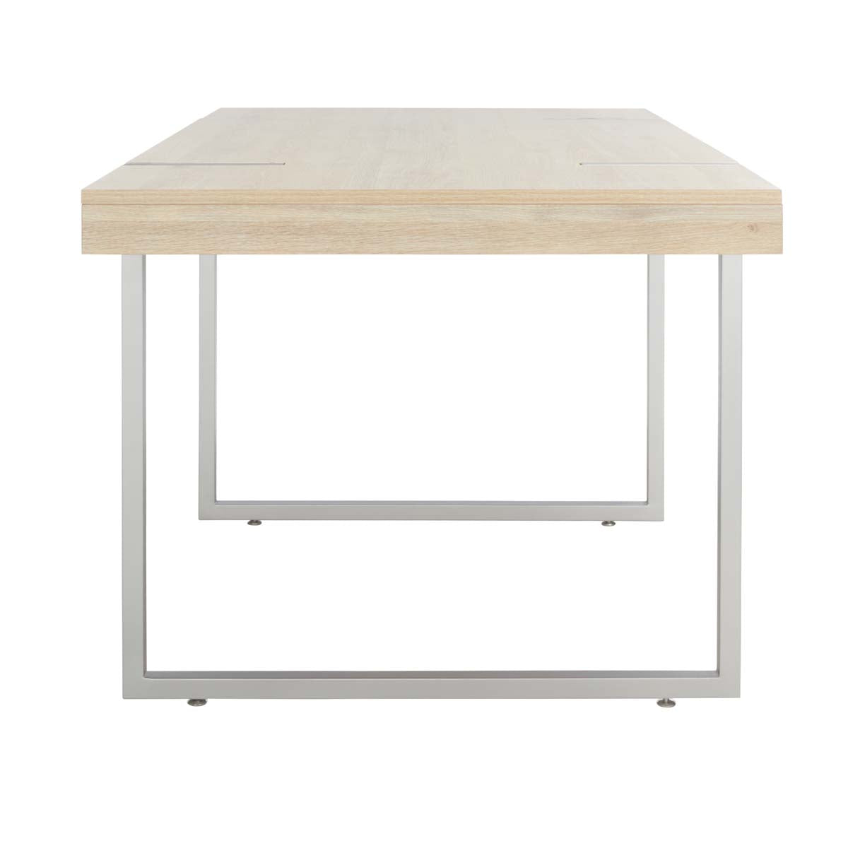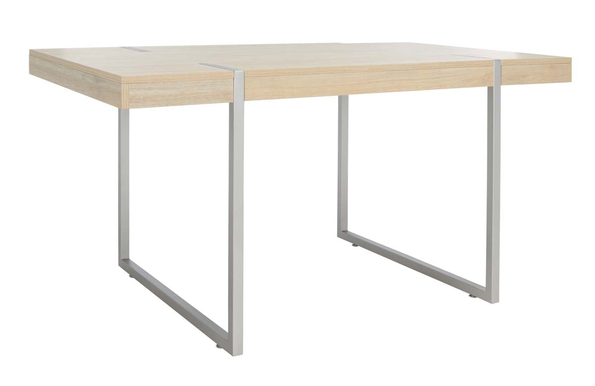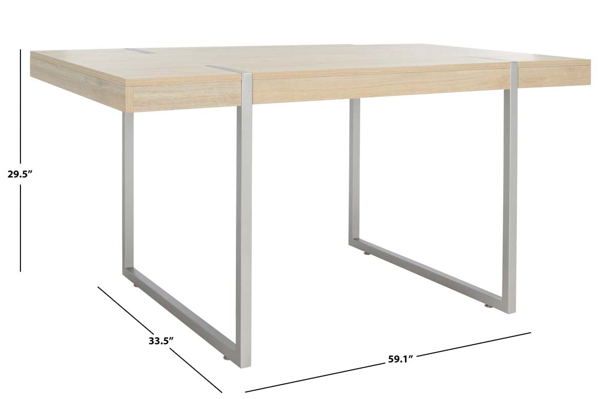 Embrace The Effortless Style And Charm Of Our Cael Dining Table. Defined By Clean And Crisp Lines, Our Dining Table Features A Thick Rectangular Tabletop. Its Silver Metallic Base Meets The Top To Serve As A Unique And Striking Design Feature. Our Dining Table Warms Up With The Rich Grains Of Wood, Finished Off In A Graceful Sand Color. Perfectly Harmonizing With A Silver Frame, The Stylish And Inviting Dining Table Can Comfortably Seat 4-6 People.