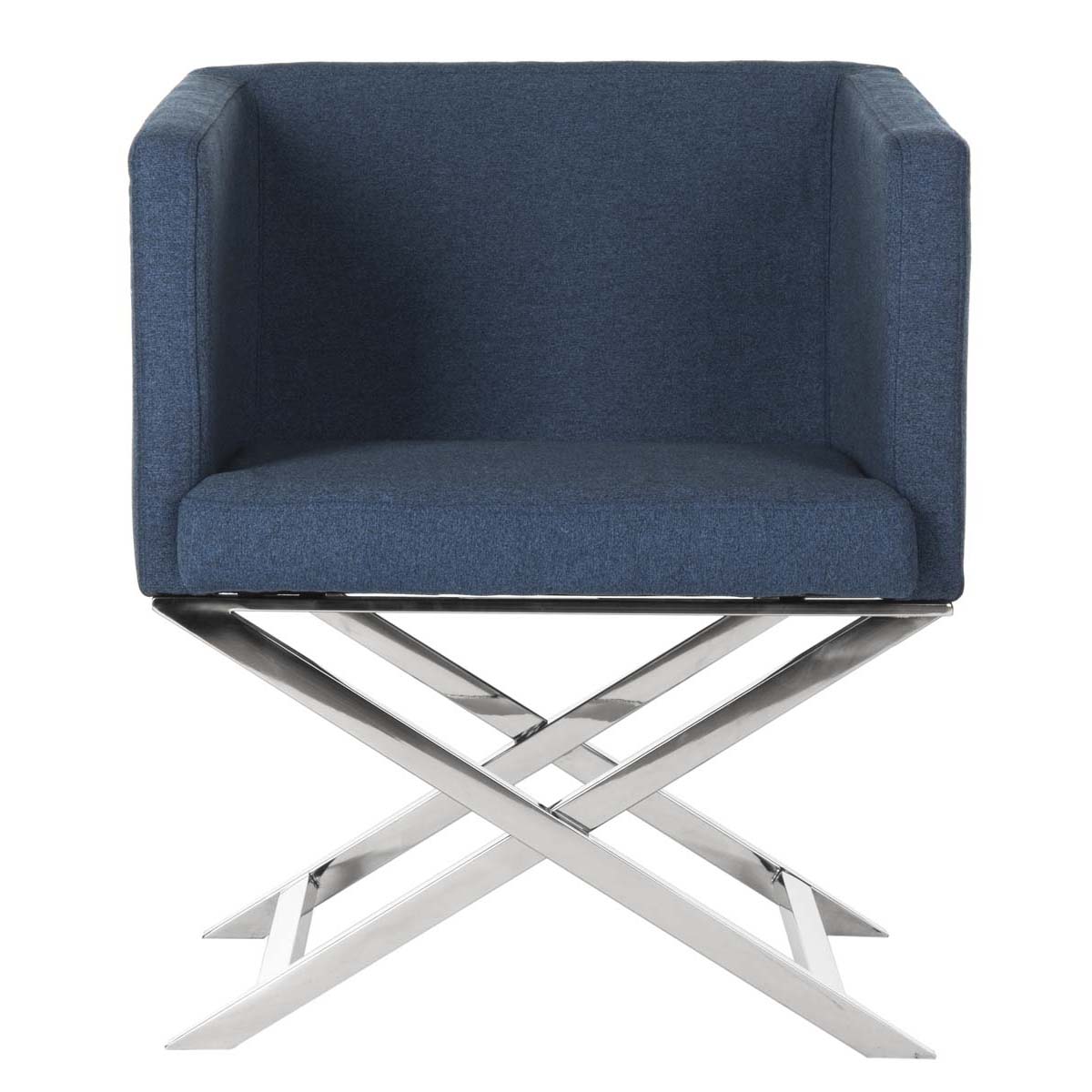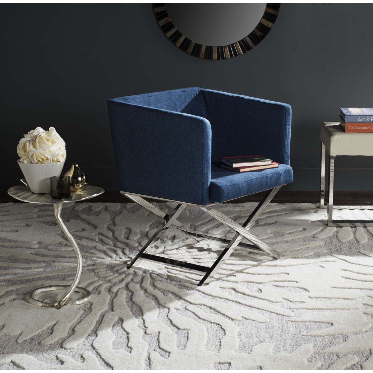 Safavieh Celine Chrome Cross Leg Chair - Navy/Chrome