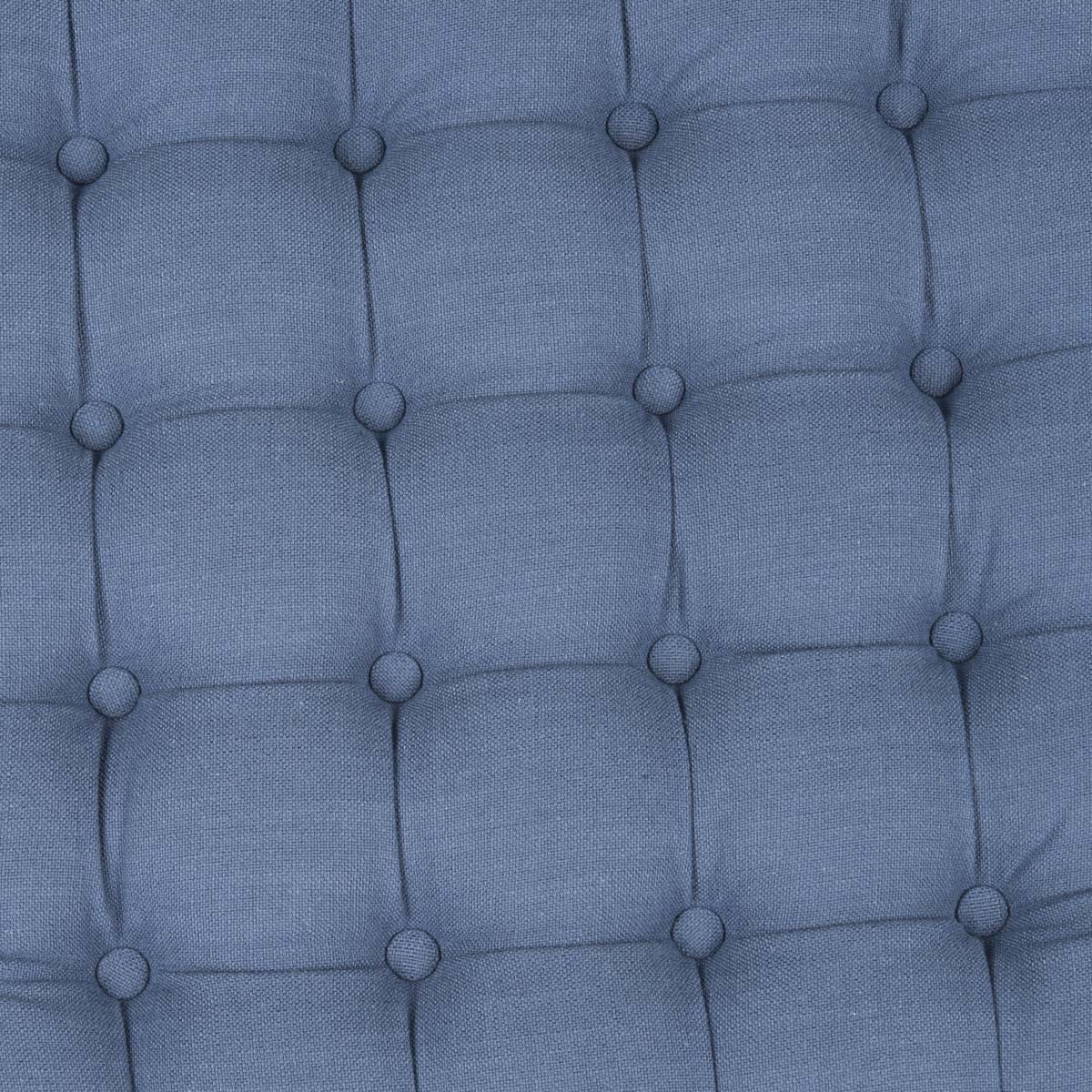 Brimming with sophistication, this ottoman recalls 1930s Hollywood glamour with its lavish navy button tufted upholstery. The oversized round shape and lush but sturdy surface allow it to serve double duty as a wonderful coffee table or extra seating.