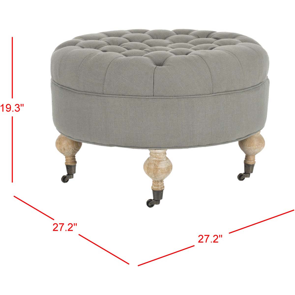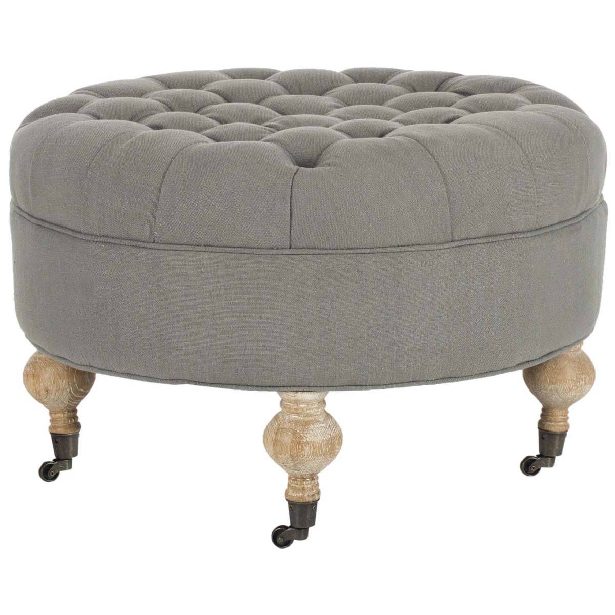 Classic and elegant, the generously padded and tufted Clara Ottoman is crafted from solid wood in a pickled oak finish. Pure granite grey linen makes Clara luxuriously comfortable while casters give easy mobility.