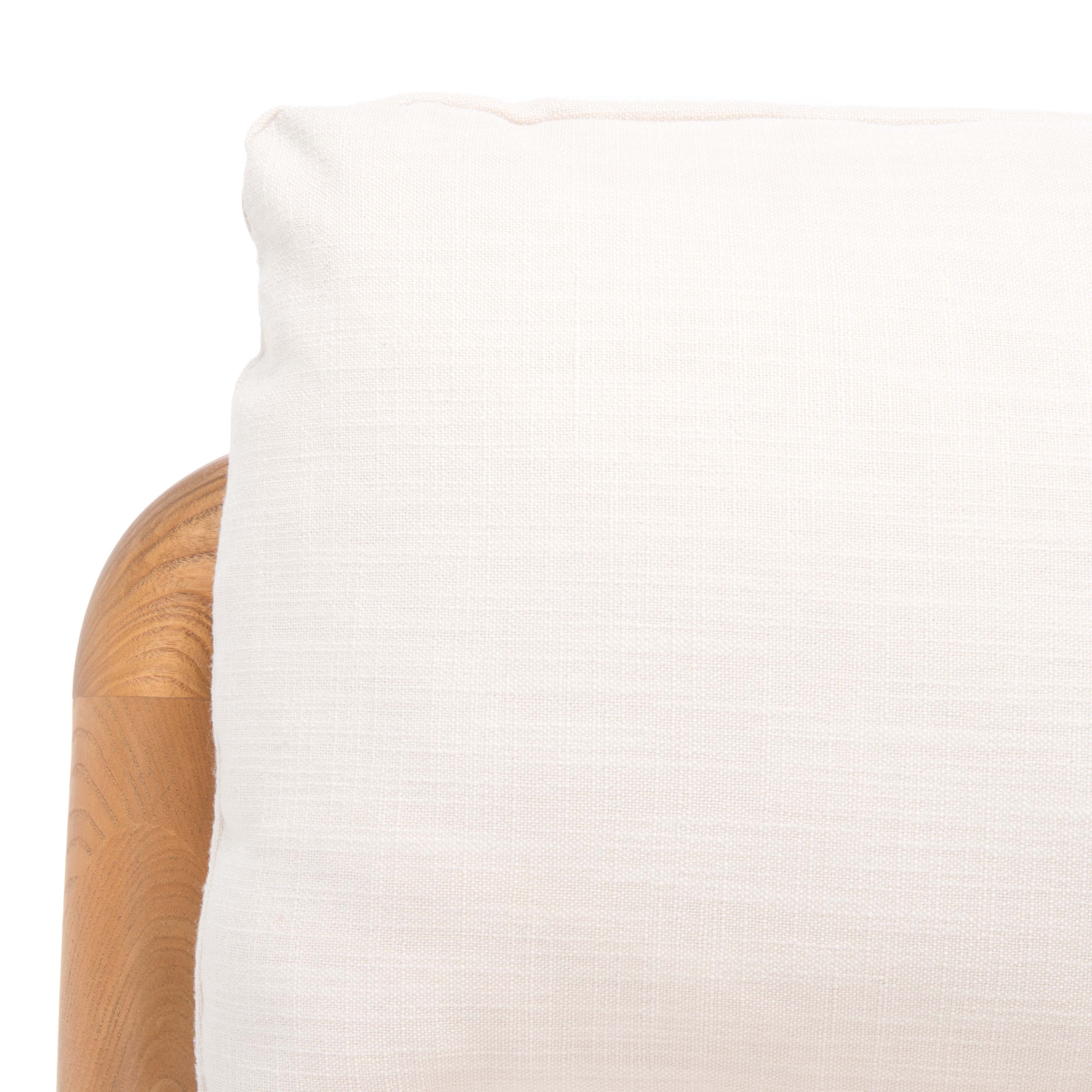 Elevate your living space with the inviting style and comfort of our Claxon accent chair. The relaxed profile of the chair meets an airy wooden frame to become a chic and inviting addition to your home. Its back and seat are beautifully sculpted and cushioned to cradle you in comfort. The chair features an ashwood frame to lend natural warmth and textures to any corner. Upholstered in stain-resistant white linen, our accent chair is sure to become your favorite spot to relax and lounge.