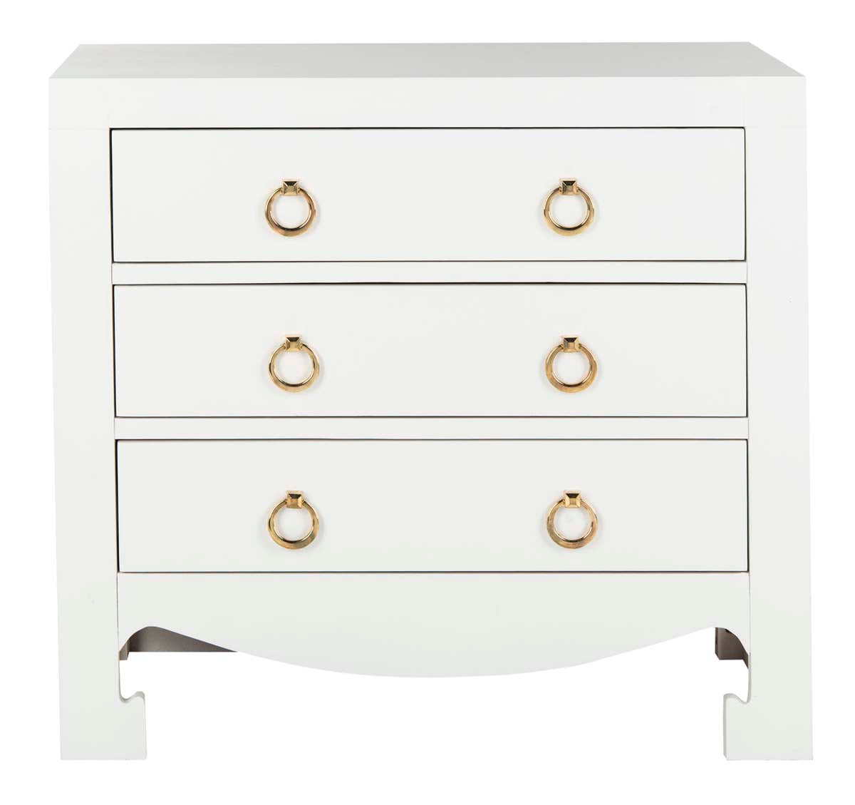 Ancient Asian sophistication is given a sleek modern update in this fabulous Dion Chest. Effortlessly emanating glamorous charisma, Dion's clean white finish highlights the shimmering gold pulls on its three drawers and Paifang inspired apron.
