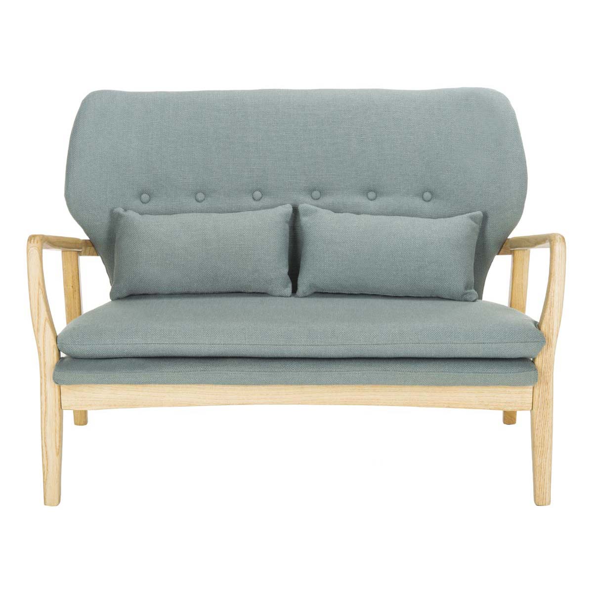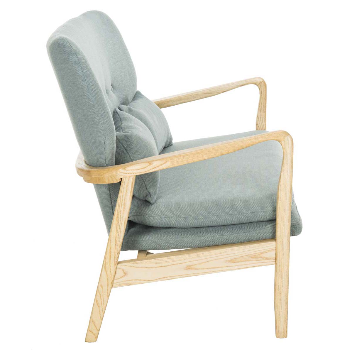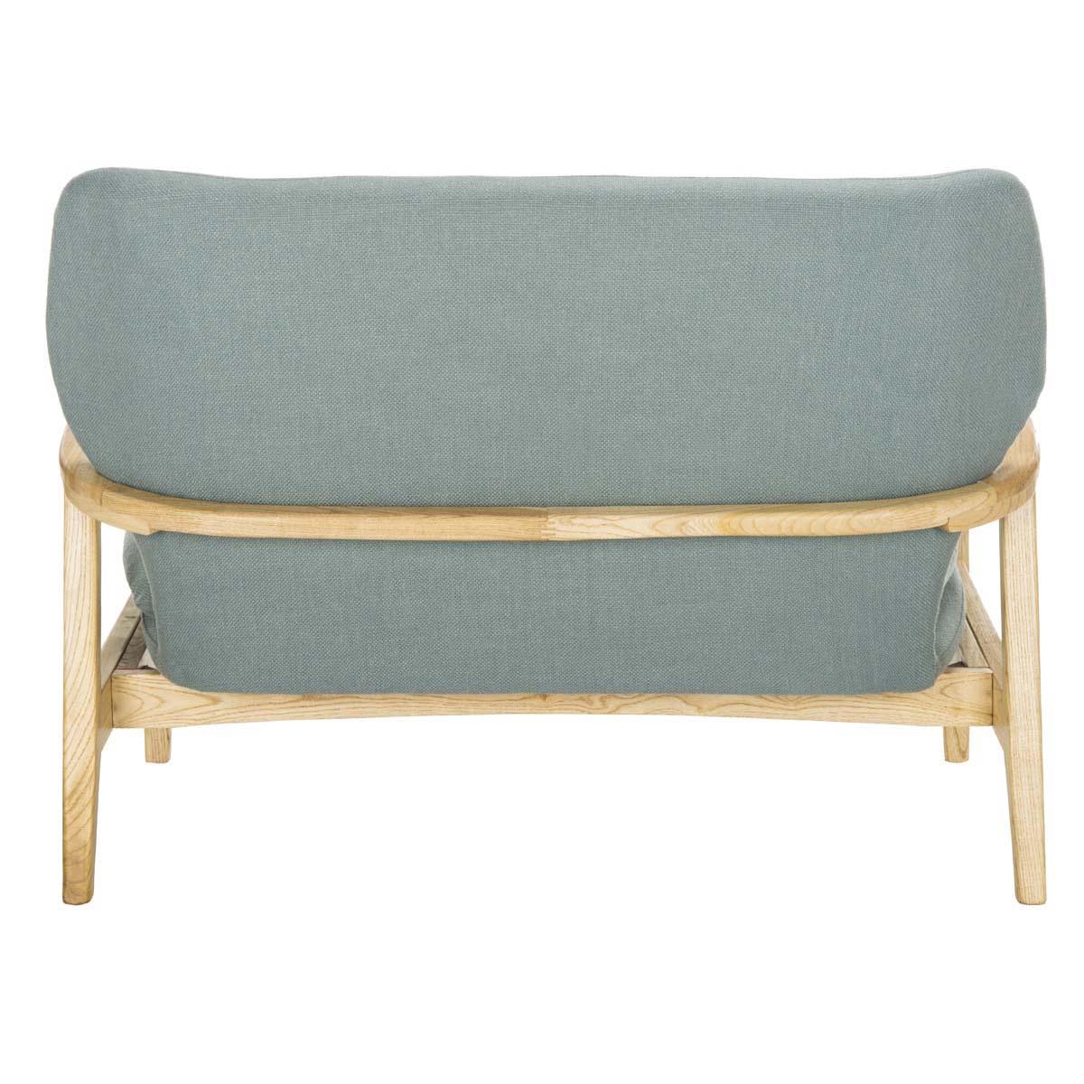This fashion forward Ellaria makes a bold artistic statement in any room. Designed to highlight its natural finished elm wood, its stylish blue upholstery features chic button tufted detail.