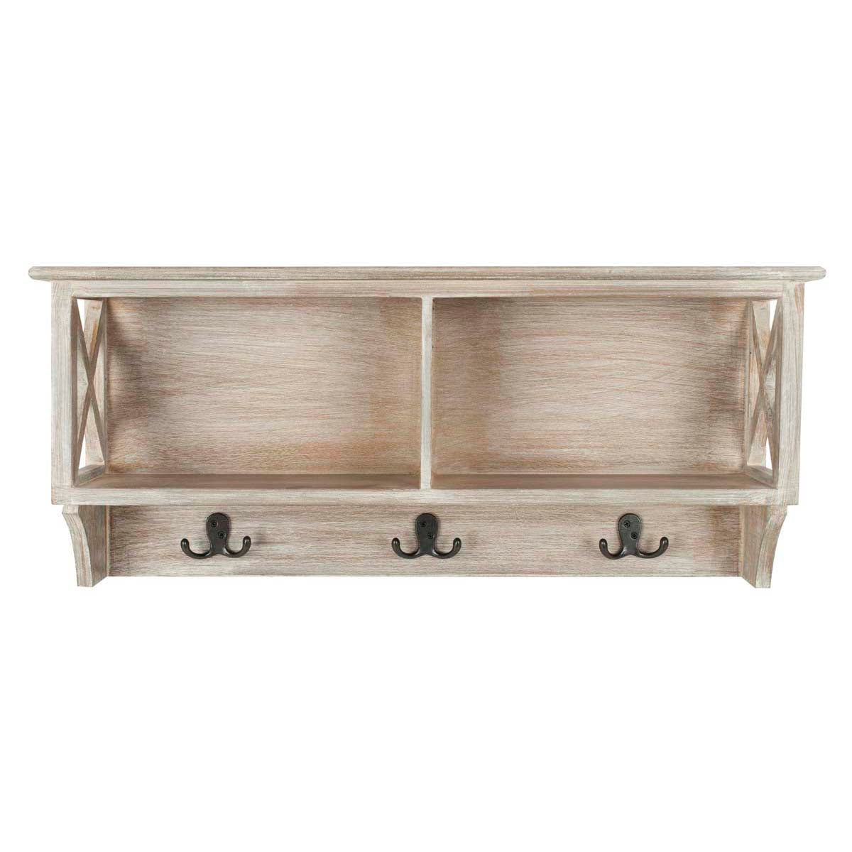 Organize any space in an instant with this traditional hanging storage wall rack. Its grey finish and classic design give a warm feel to any entryway, kitchen or mudroom, while its open storage compartments and three double hooks allow easy access.