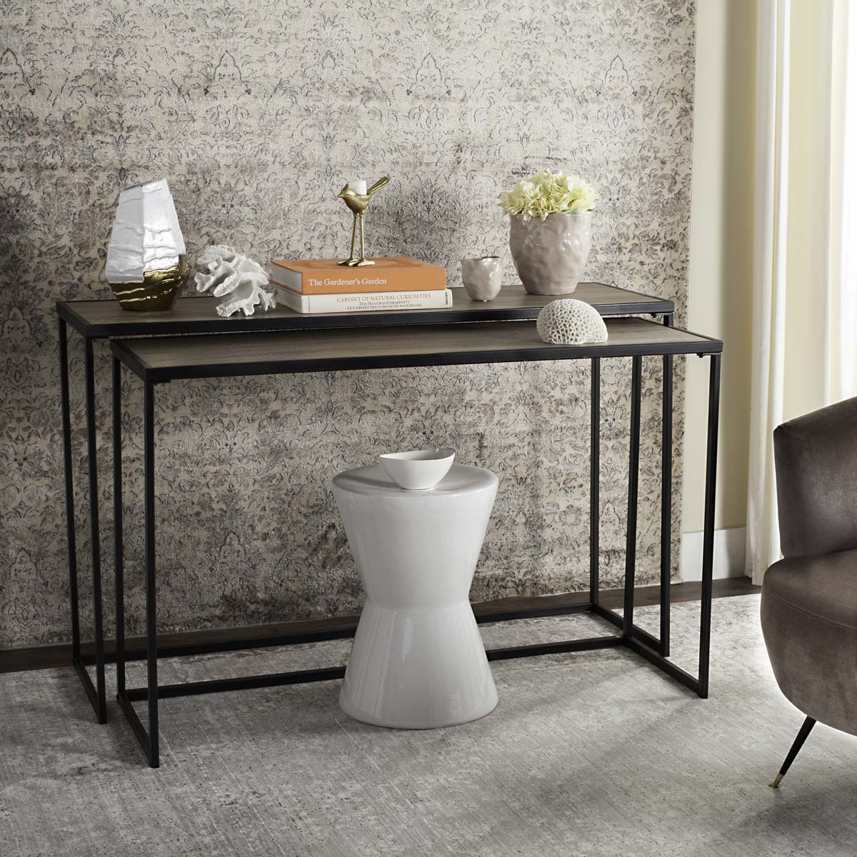 Create a dramatic entrance with this contemporary console. Reminiscent of the townhouse of the late London craftsman known for his bespoke furnishings for modern royalty, its sleek iron lines are paired with a clean light grey palette for relaxed luxury.