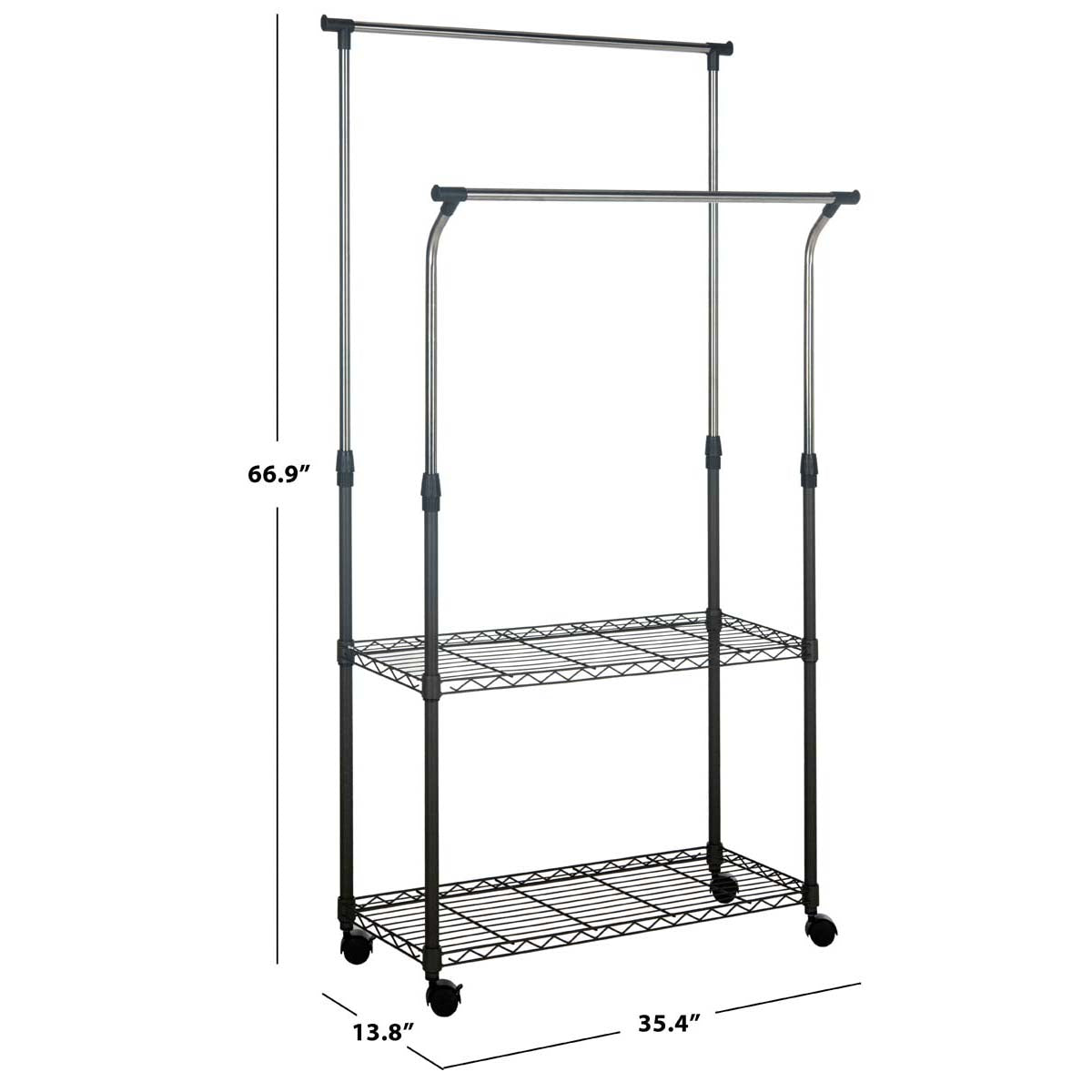 Safavieh Giorgio Chrome Wire Dble Rod Clothes Rack (35.4 In. W X 13.8 In. D X 66.9 In. H) - Chrome