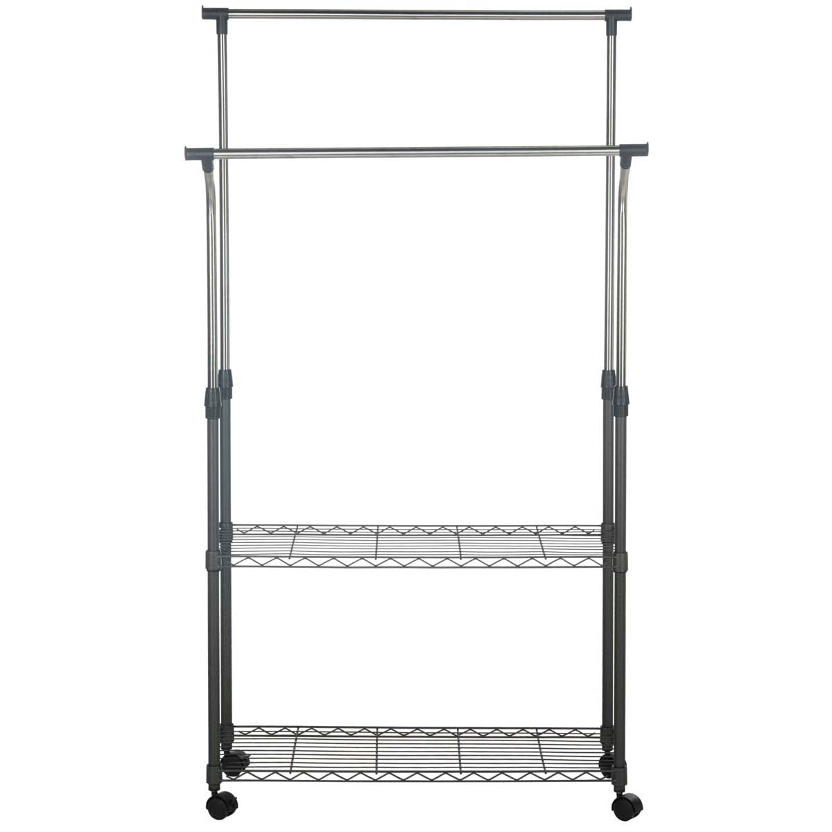 The Giorgio Double Rod Clothes Rack is a portable wardrobe solution with maximum storage. Two long vertical rods ensure garments of all sizes and shapes can breathe, while hefty storage shelves ensure that accessories are visible and instantly accessible.