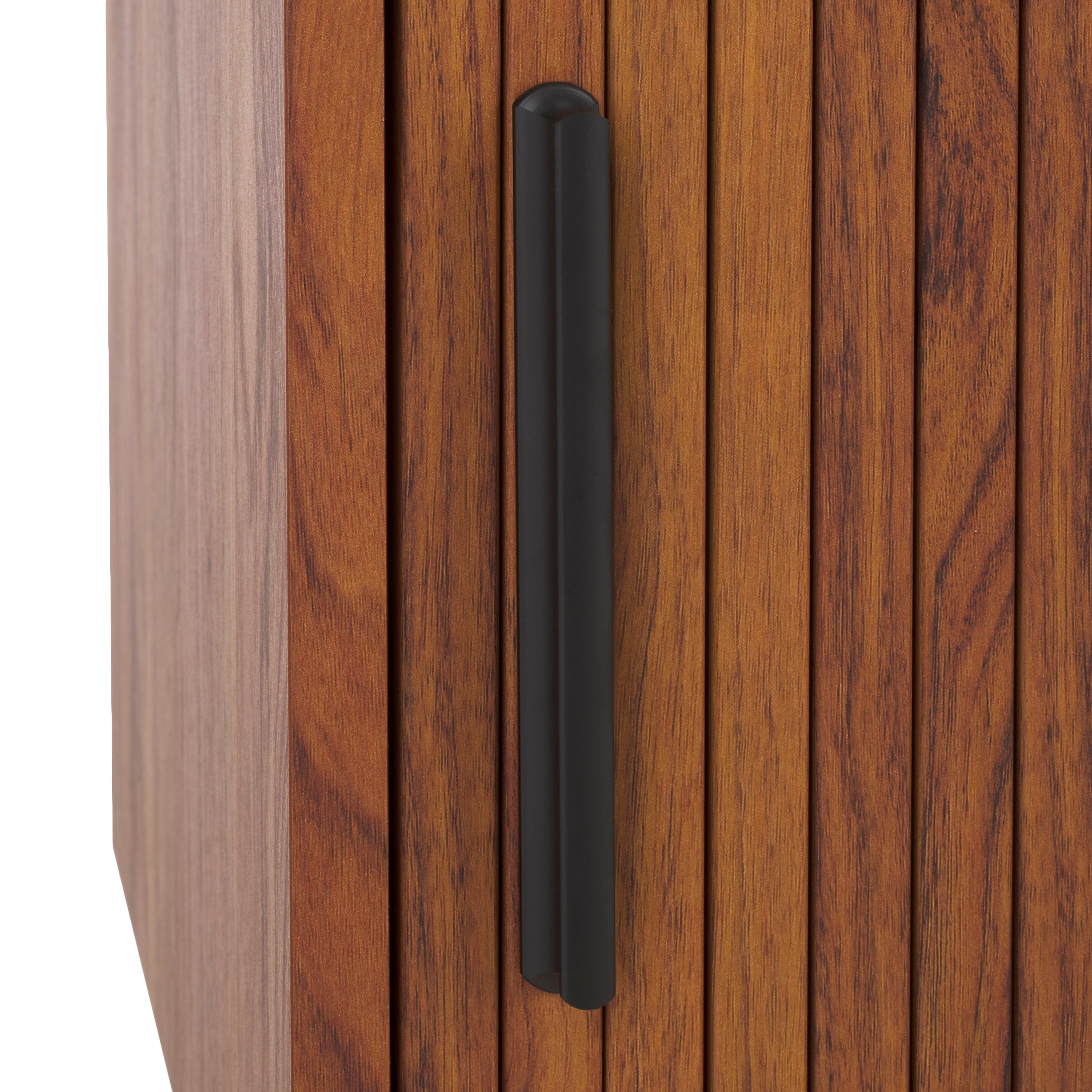 Embrace the chic style and elevated functionality of our Javante tambour door media stand. Our stunning media unit stands out with its playful symmetry and elevated details. It's clean-lined and airy profile is perched upon tapered legs. The media stand showcases the rich grains of wood in a deep walnut or oak finish. It features tambour doors to deliver elegance and dynamic functionality. Both stylish and compact, our open and airy storage unit allows you to display components or tuck them away inside its sleek cabinets.