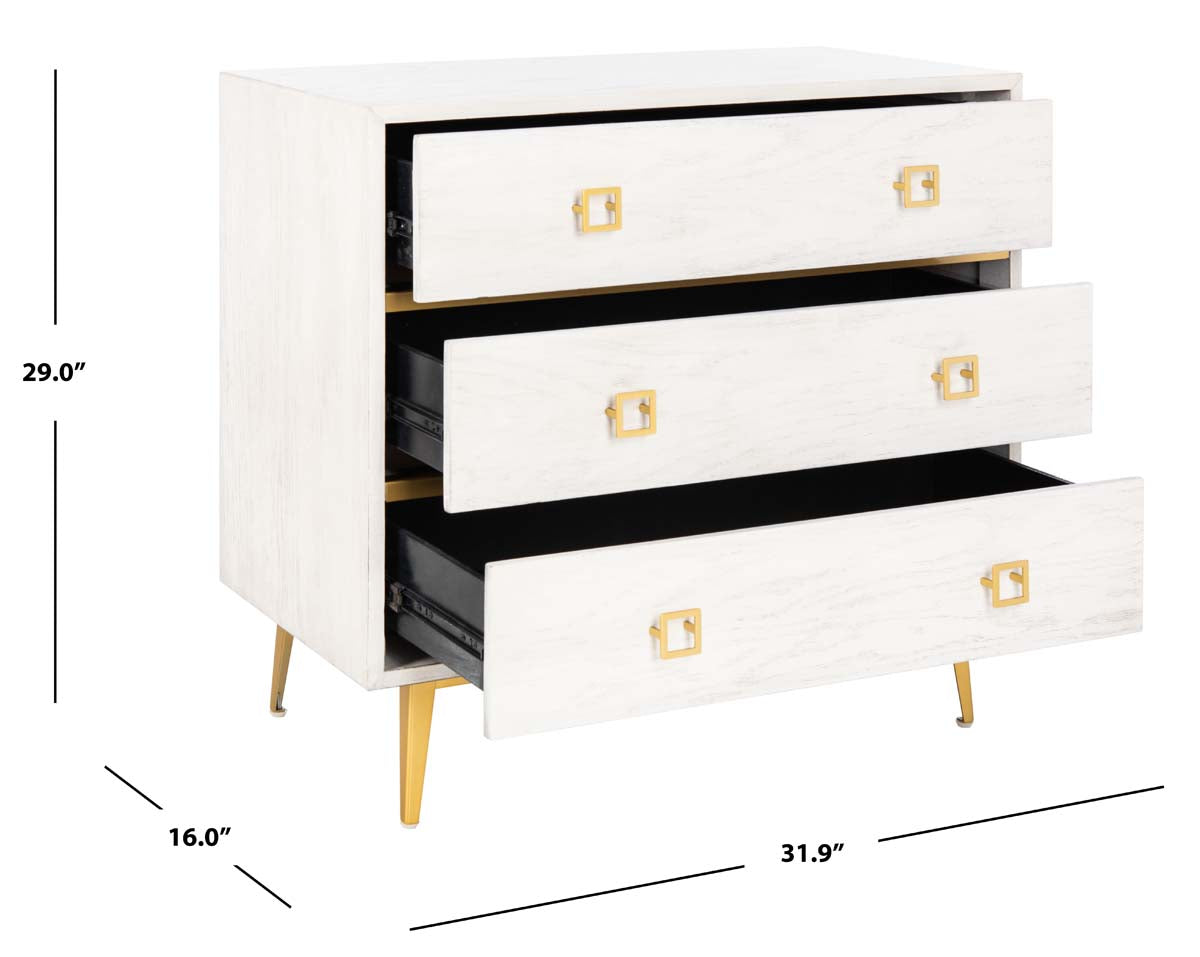 Safavieh Katia 3 Drawer Chest - White Wash/Gold