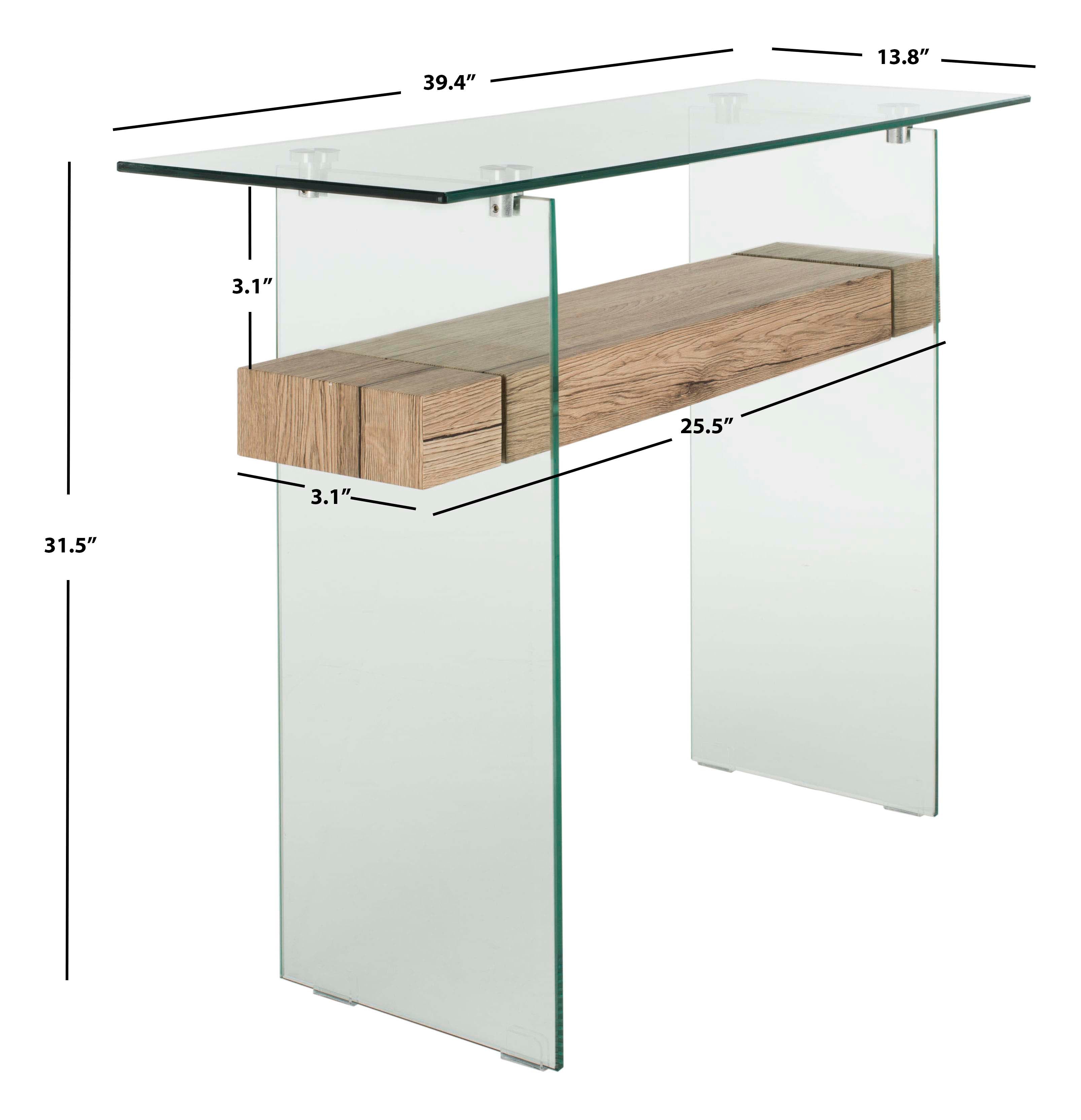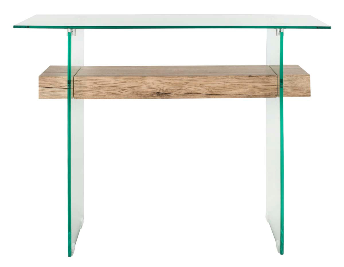 Safavieh Kayley Rectangular Modern Glass Console Table - Glass/Natural Wood Shelf