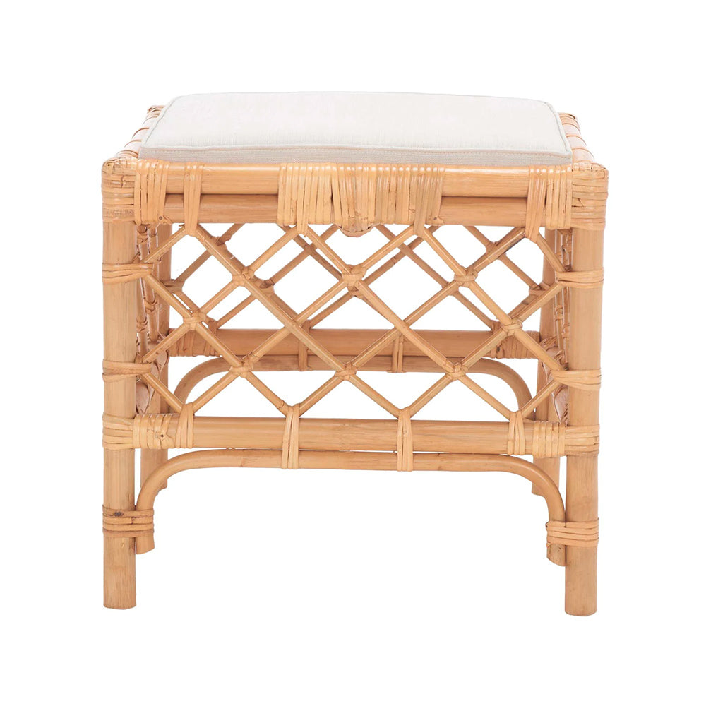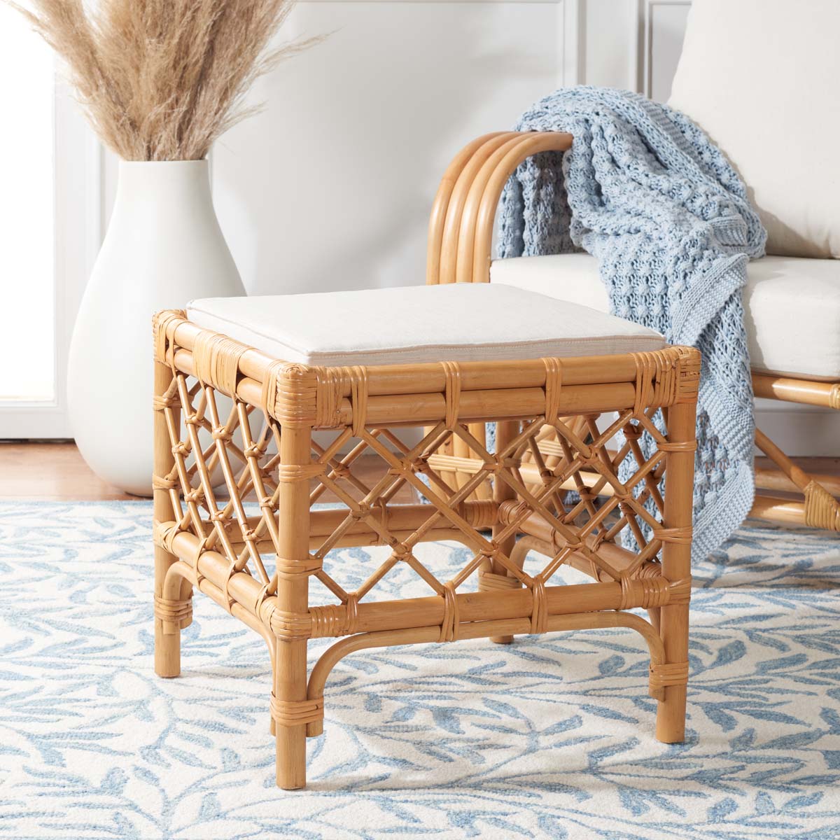Safavieh Larroux Rattan Ottoman W/ Cushion - Honey / White