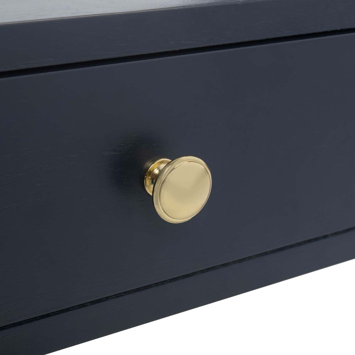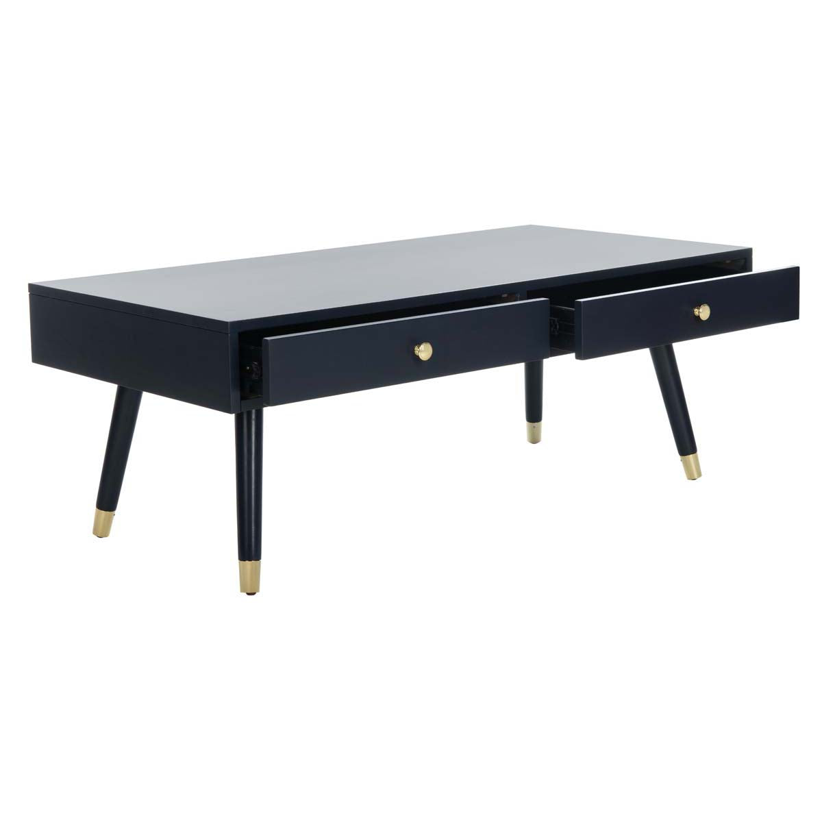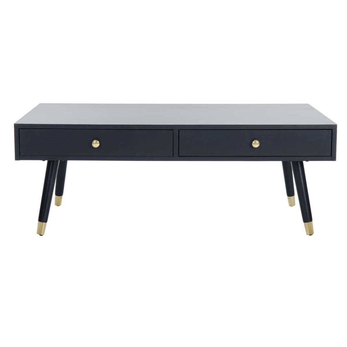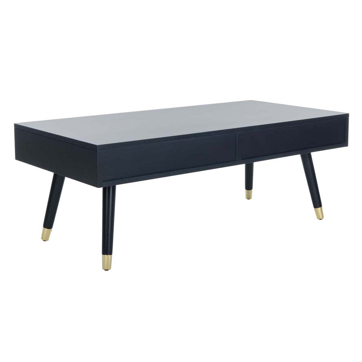 Add instant character to the living room with this contemporary gold cap coffee table. Designed for the modern tastemaker, its navy wood and bold gold finished brass hardware create its updated vintage style. Designers love its two ample drawers.