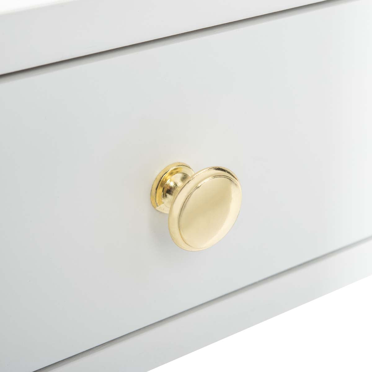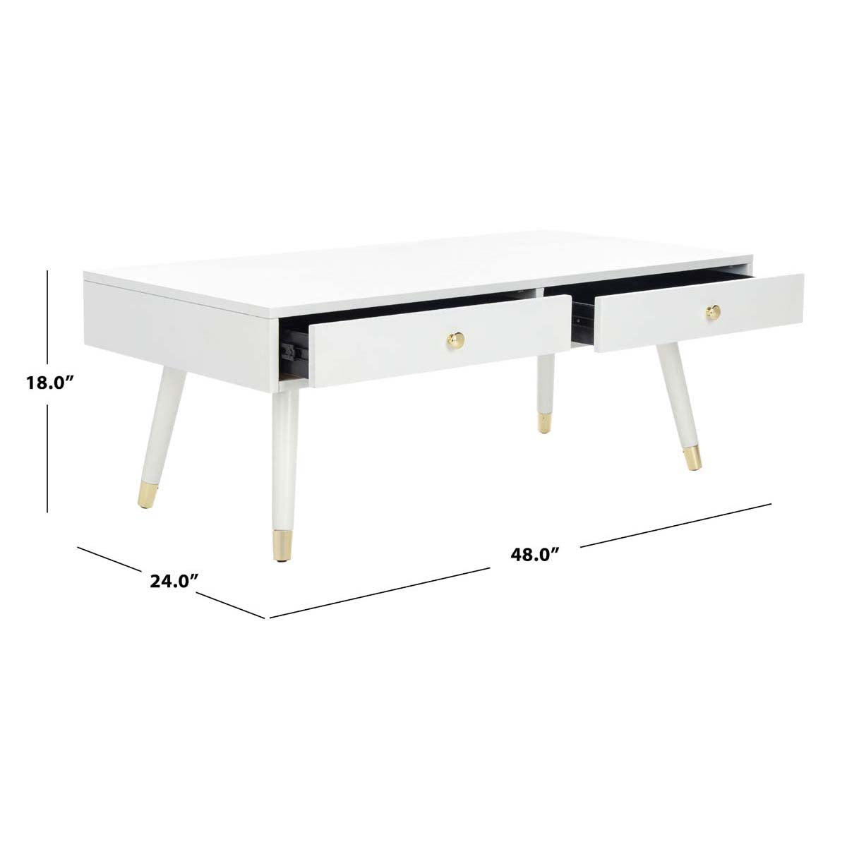 Add instant character to the living room with this contemporary gold cap coffee table. Designed for the modern tastemaker, its white wood and bold gold finished brass hardware create its updated vintage style. Designers love its two ample drawers.