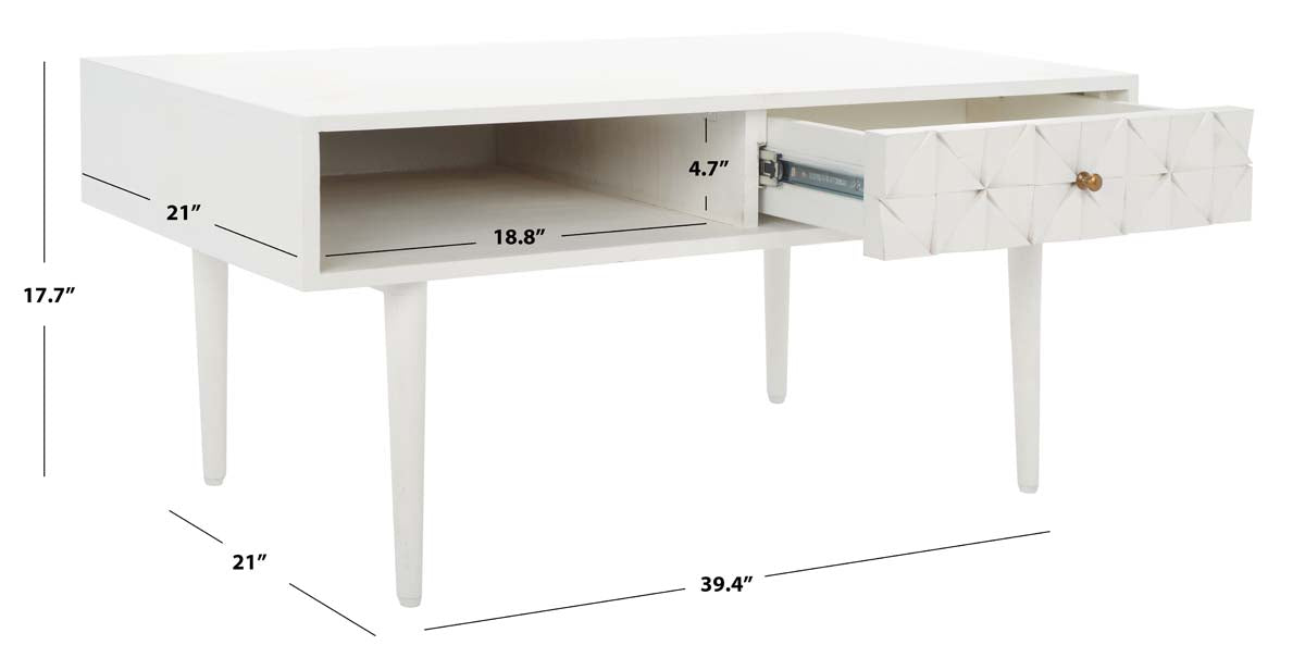 This lavishly designed Lexington Coffee Table is the perfect piece to enrich your living room with sophisticated modern chic. Providing plentiful storage with an open shelf and hard-carved faceted drawer, Lexington?? soft whitewash finish seamlessly accents any interior?? color scheme.