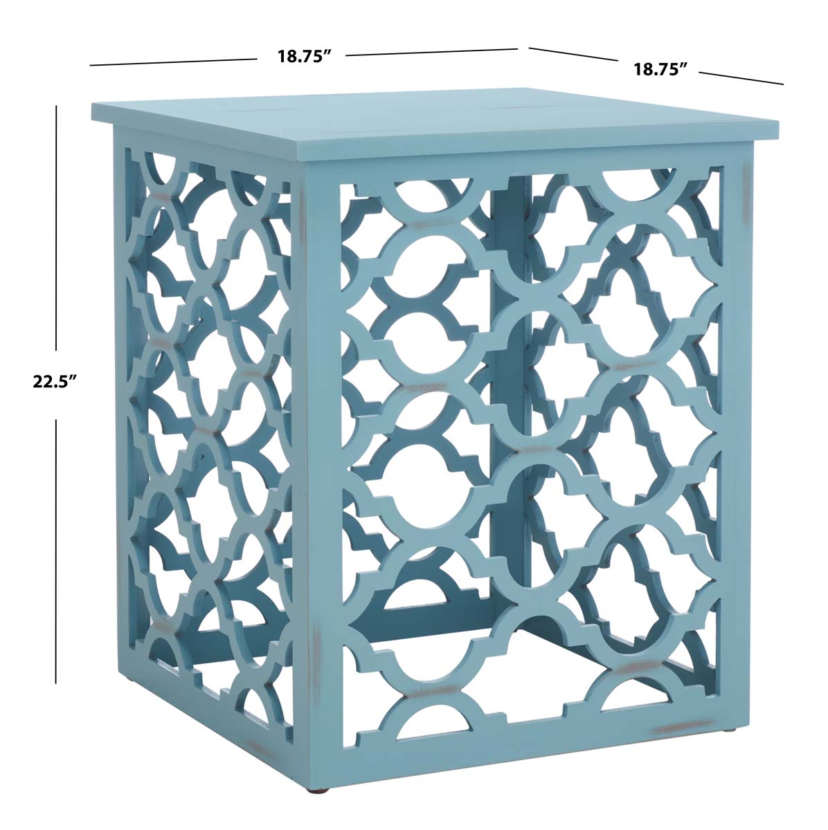 Inspired by intricate Moroccan architecture, the open lattice of this Lonny End Table brings an airy feel to any living space. Lonny's clean-lined rectangular shape beautifully contrasts its curved quatrefoil pattern, while a modern blue finish updates the timeless look.