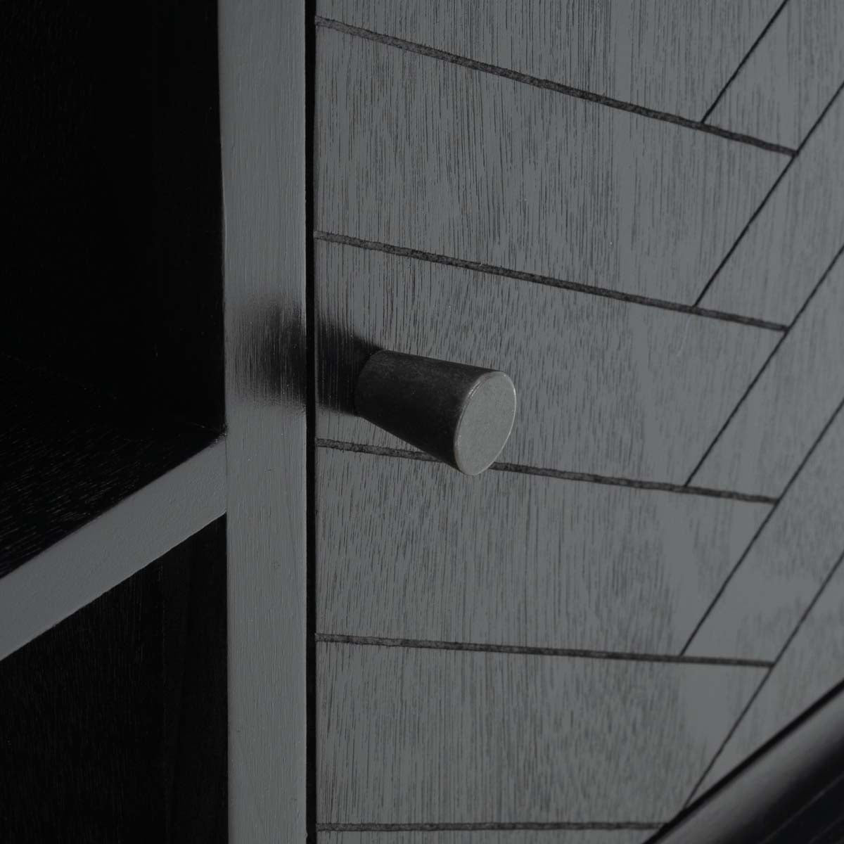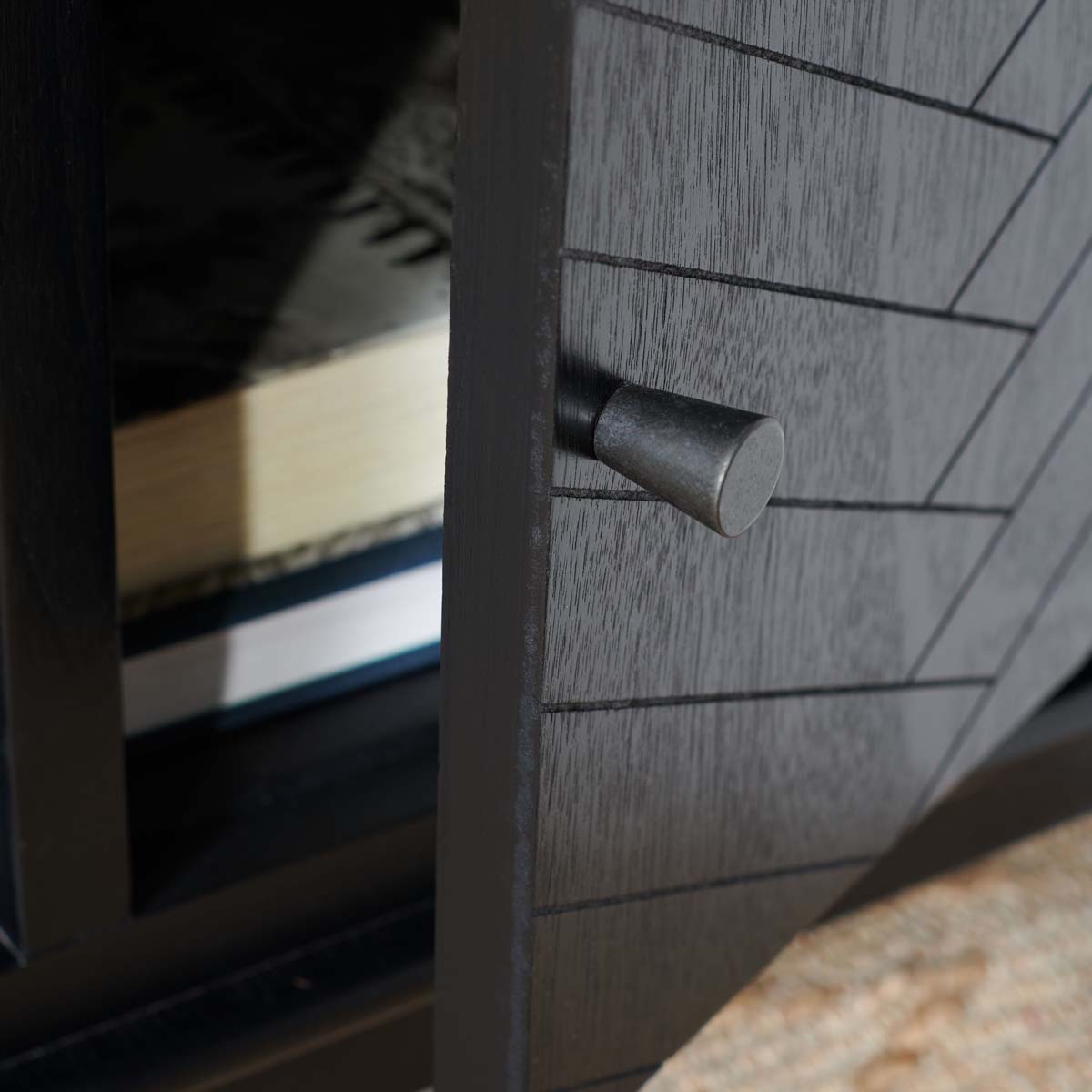 Classic meets contemporary in this Magnolia Media Stand, giving your entertaining space a timeless touch. Magnolia???s turned feet pair beautifully with the oversized herringbone pattern on its two doors, and two shelves provide space for consoles or electronics. A sleek black finish completes the look.