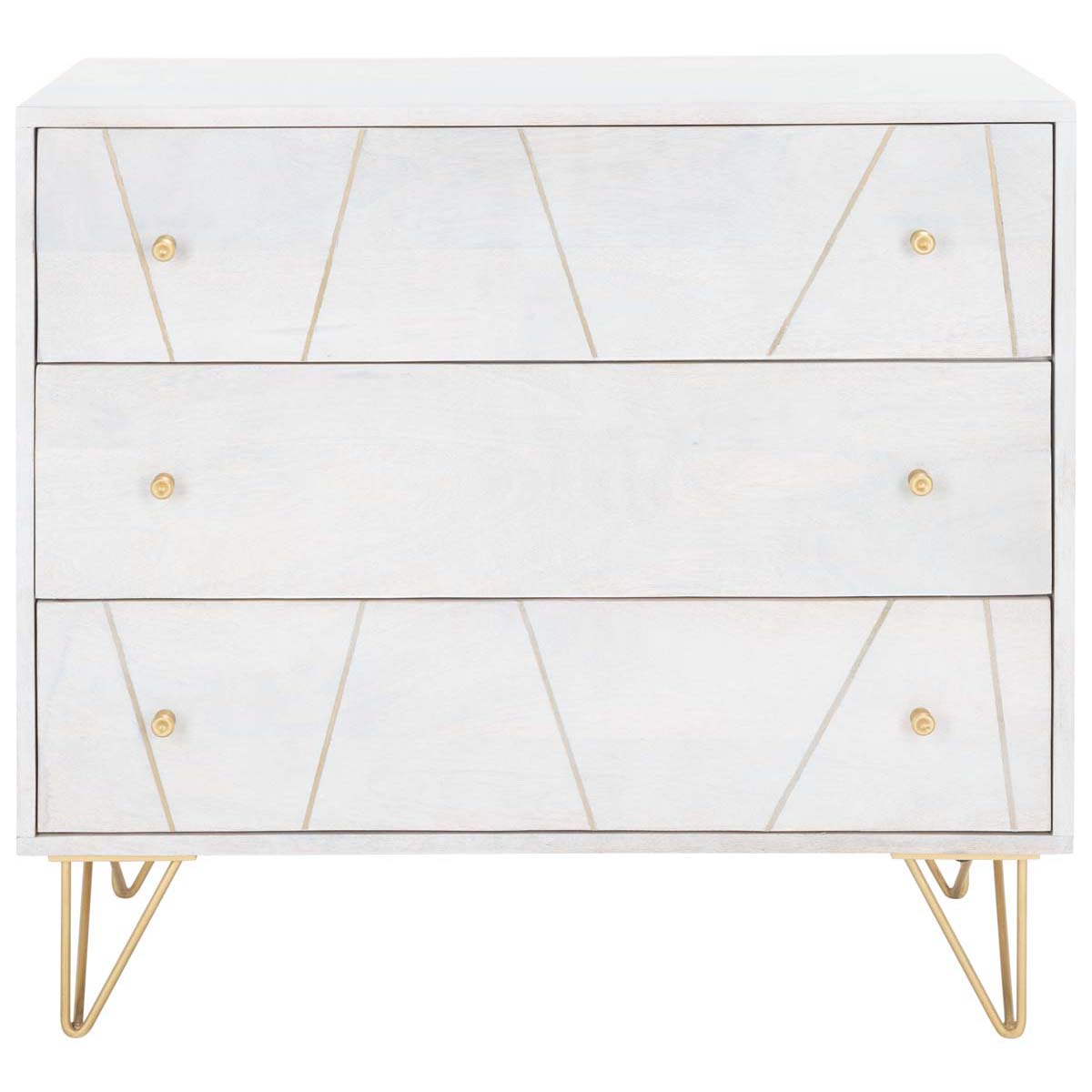 Safavieh Marigold 3 Drawer Chest - White Washed / Brass